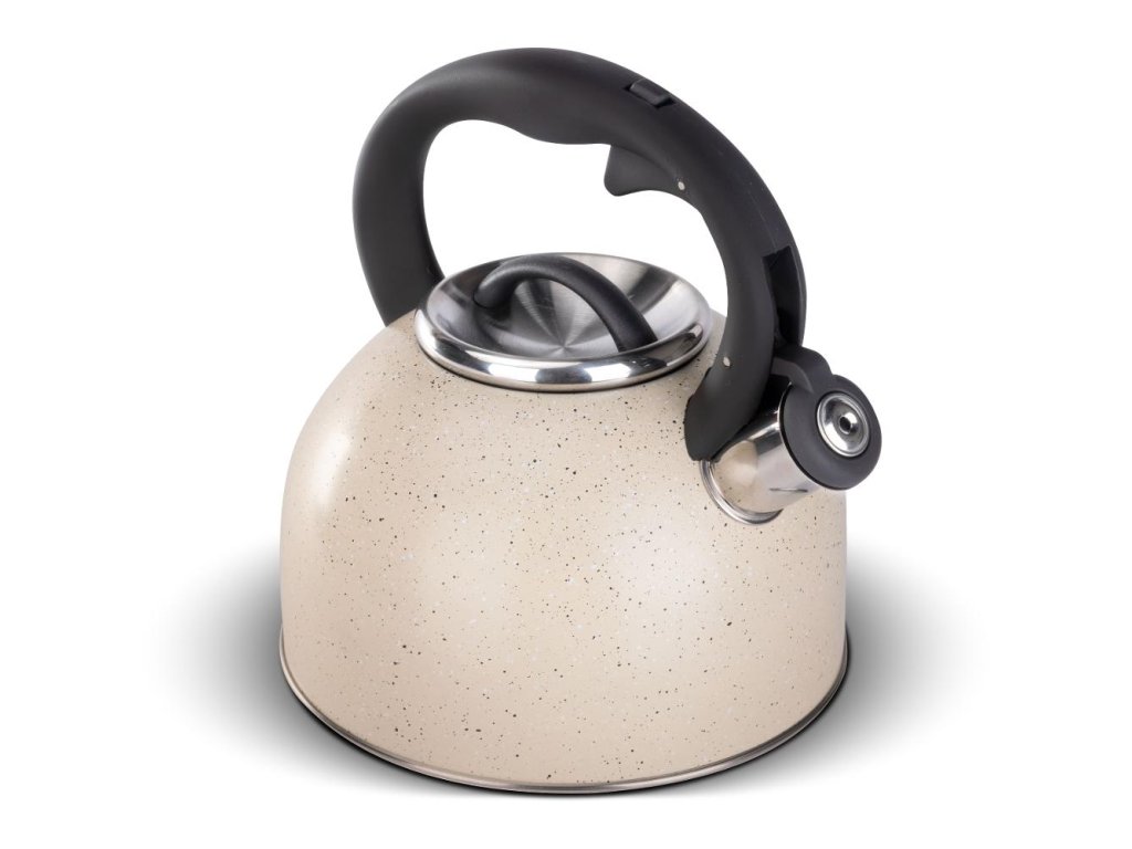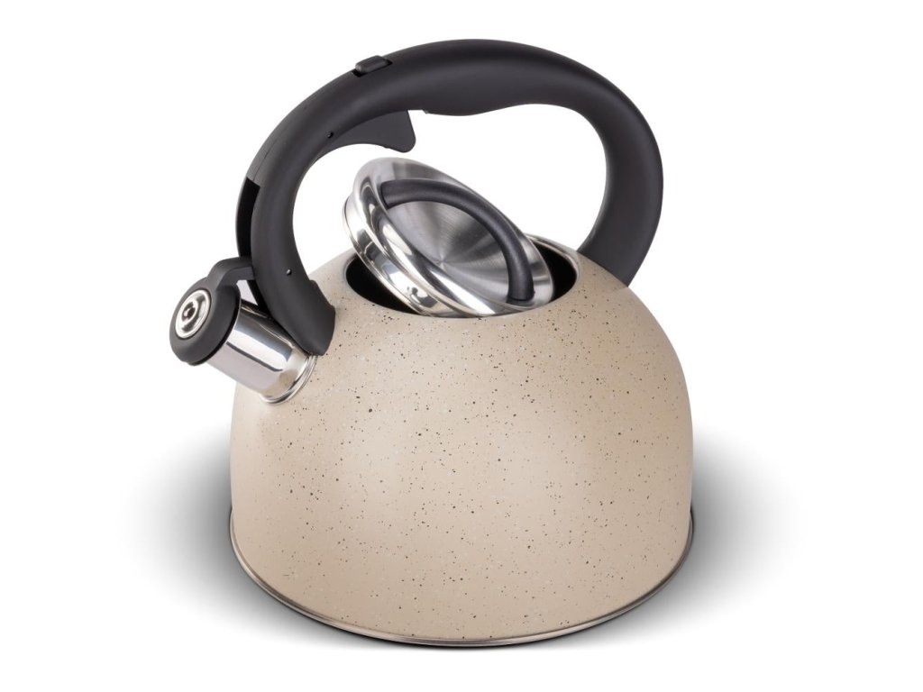 Luxusní čajník je opatřen odklápěcí píšťalkou, která ohlásí vařící se vodu.