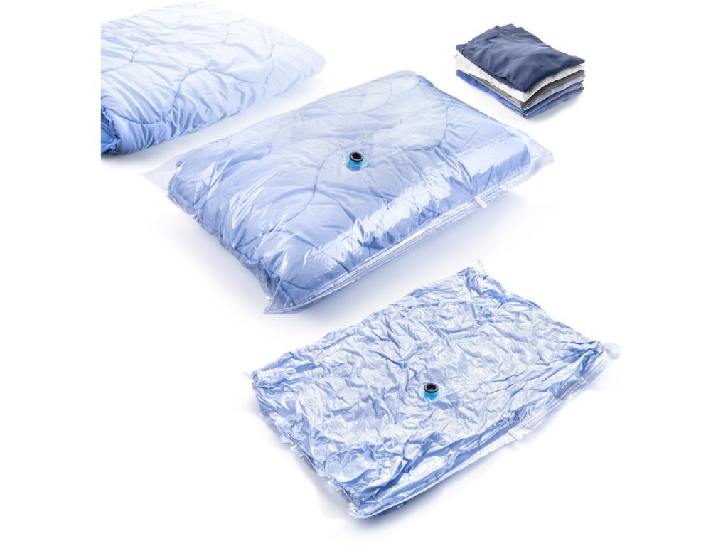 Úložný vak slouží jako ideální ochrana oděvů nebo textílie proti prachu, molům, vlhkosti nebo zápachu. Vak je antibakteriální a obsahuje vzduchotěsné zavírání a odsávací ventil pro všechny typy běžných vysavačů. Vak má silnou fólii zaručující dlouhou životnost a umožňuje opakované používání. Při skladování ušetříte až 80% místa. Zpětný ventil znemožňuje úniku vzduchu směrem ven. Materiál: PA + PE.