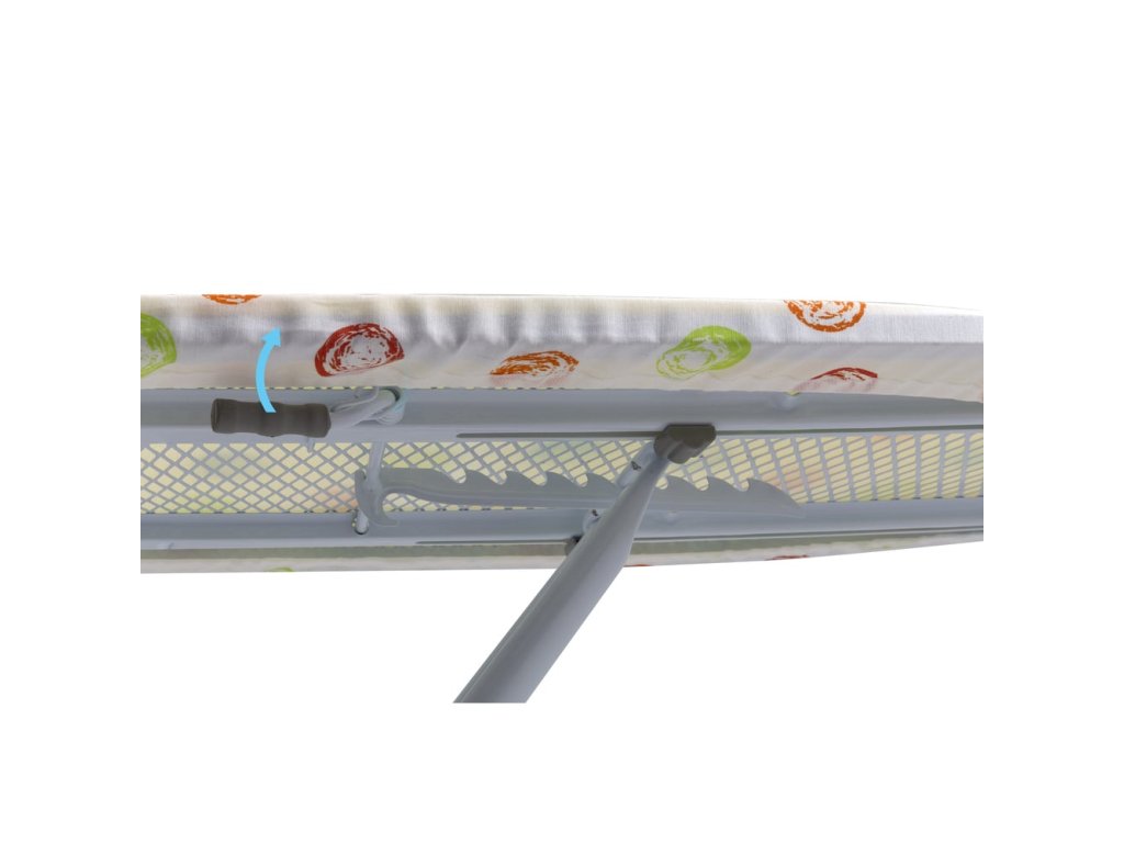 Součástí prkna je také bavlněný potah. Prkno je výškově nastavitelné do 92 cm s odkládací plochou pro napařovací žehličky se silikonovými prvky proti poškození plochy i žehličky při odložení.