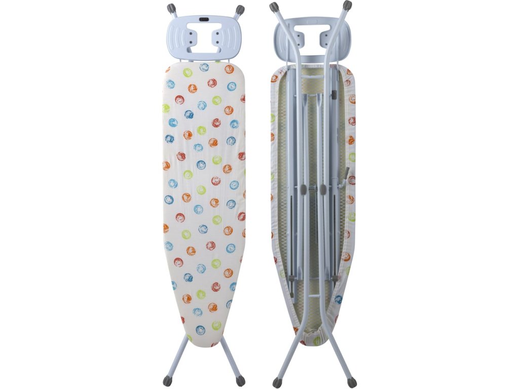 Kvalitní žehlící prkno opatřeno transportním zámkem, žehlicí plochou odvádějící páru a elektrickou zásuvkou. Prkno má stabilní a bezpečnou konstrukci opatřenou protiskluzovými koncovkami u nohou výrobku.