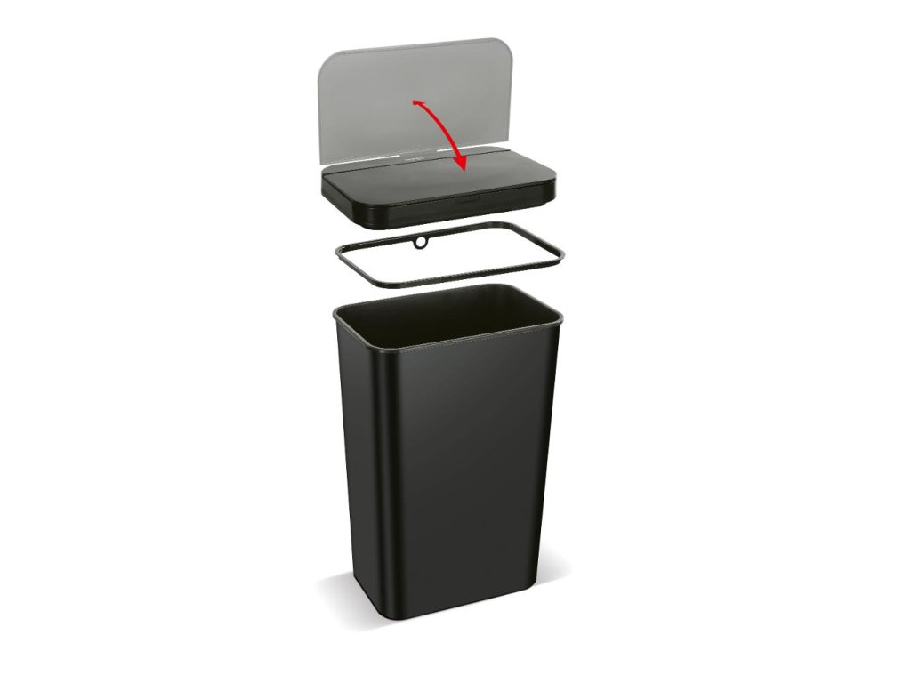 Bezdotykový koš se vyznačuje jednoduchou obsluhou, ergonomickým a designovým zpracováním. Koš je vyroben z kvalitních materiálů.