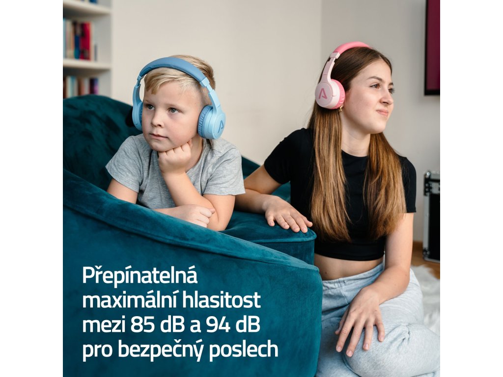 Hlasitost sluchátek má omezení na maximálně 85 nebo 94 dB, stačí přepnout na zvolenou. Dětský sluch chrání i technologie LAMAX SafeSound2.0©.