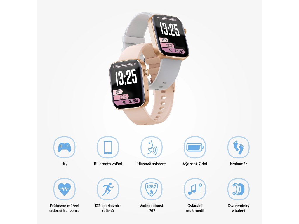 Součástí balení hodinek jsou dva vyměnitelné řemínky v světle růžový a šedý barvě. Vyber si, který se ti zrovna hodí k outfitu.