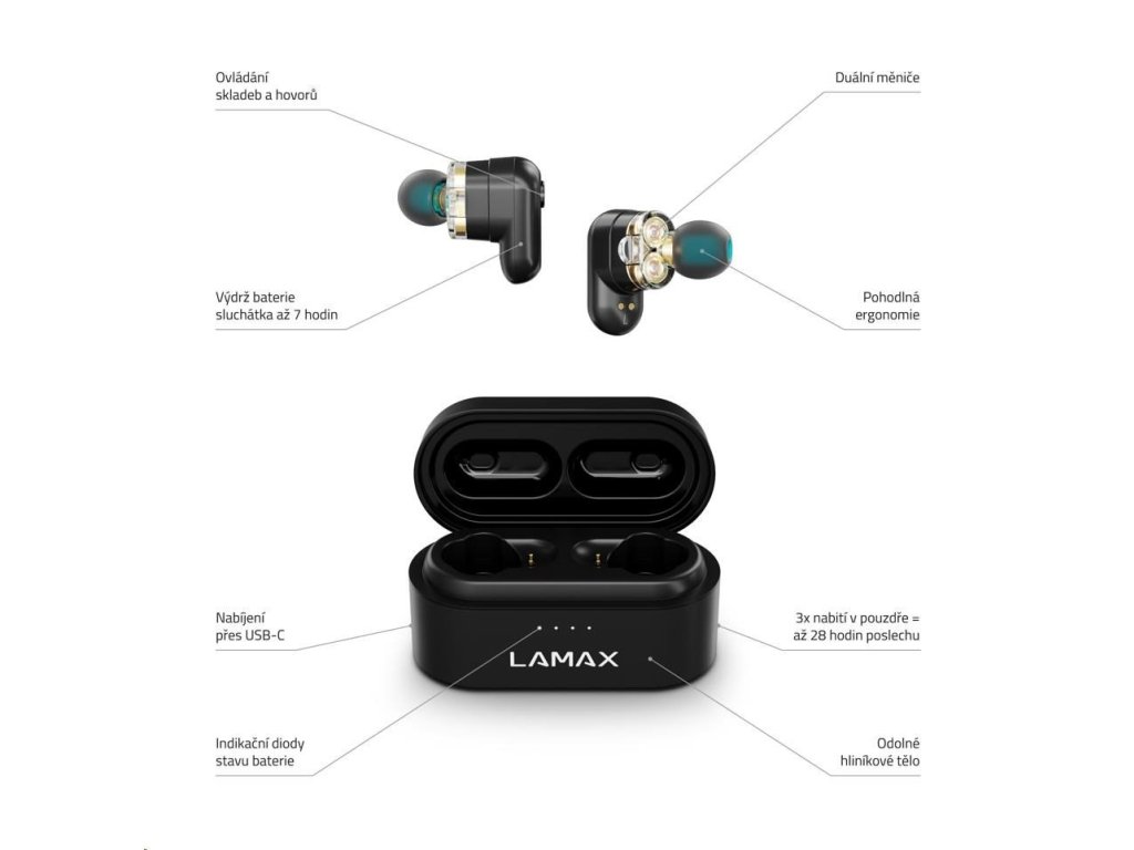 Jestli máš rád opravdu mohutný basy, tak kombo duálních měničů a naší LAMAX BeatBass® technologie, která posiluje spodní frekvence ti zaručí pořádnej basovej zážitek.