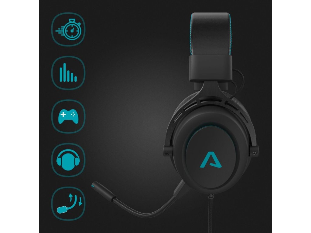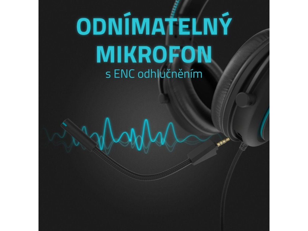 Funkce Herní režim, odnímatelný mikrofon, ovládání hlasitosti a mikrofonu na kabelu, ergonomická konstrukce, paměťová pěna, kompatibilní s PC, konzolemi i chytrými telefony, odhlučněný mikrofon, pletený kabel