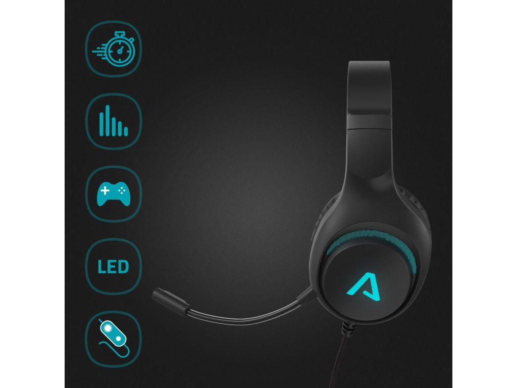 Funkce Herní režim, nastavitelný mikrofon, ovládání hlasitosti a mikrofonu na kabelu, lehká ergonomická konstrukce, LED podsvícení