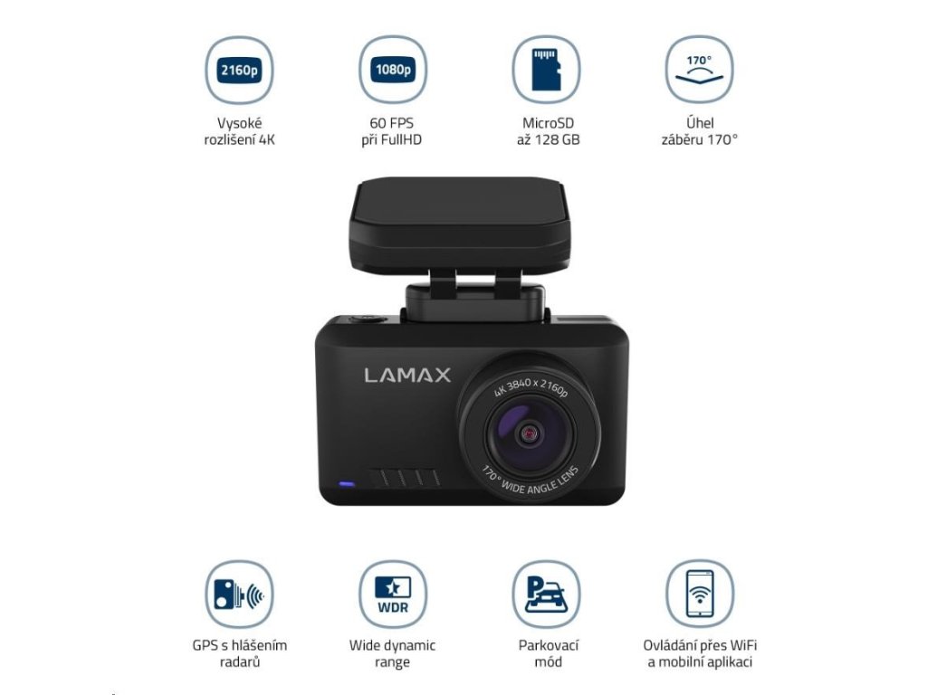Záznamová kamera s rozlišením 4K a podporou GPS (s hlášením radarů)