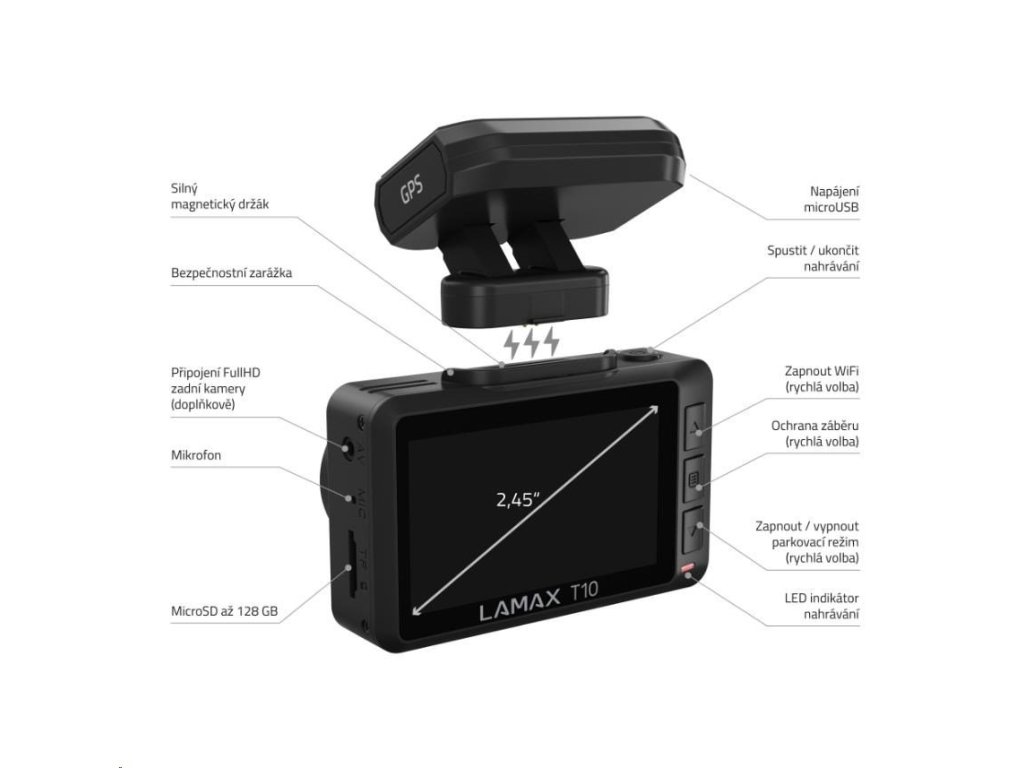 Pro maximální ochranu si k LAMAX T10 můžete dokoupit i zadní FullHD kameru. Získáte s ní důkazy i pro případ, že vás někdo nabourá zezadu. Instalace zadní kamery je jednoduchá, stačí ji přilepit na zadní sklo a propojit kabelem s přední kamerou. Při zapojení zadní kamery zvládne přední kamera natáčet maximálně v rozlišení 2.5K – i tak ale zůstane video plné důležitých detailů.