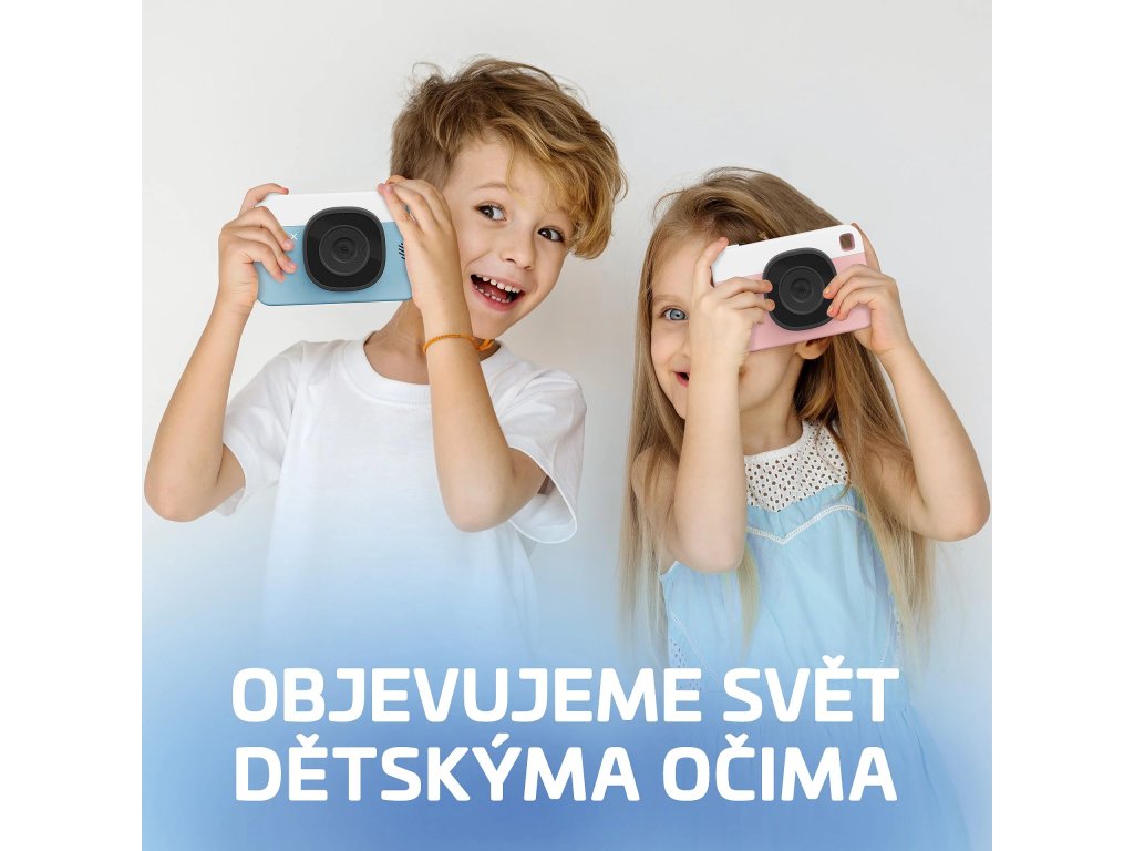 Foťák je dostupný v modré a růžové variantě, aby si vybral každý.