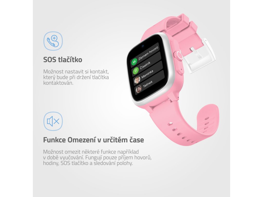 Pokud by se dítě dostalo do nouzové situace, stiskem a podržením SOS tlačítka okamžitě vytočí přednastaveného rodiče.