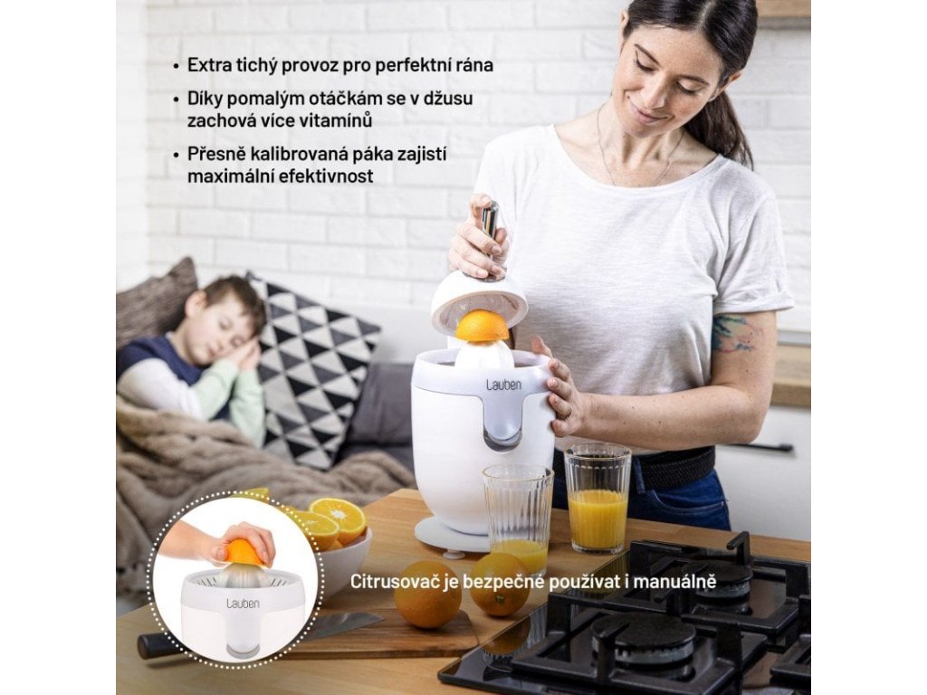 Elektrický citrusovač pracuje natolik tiše, že jej lze používat i v případě, když celá domácnost ještě spí.