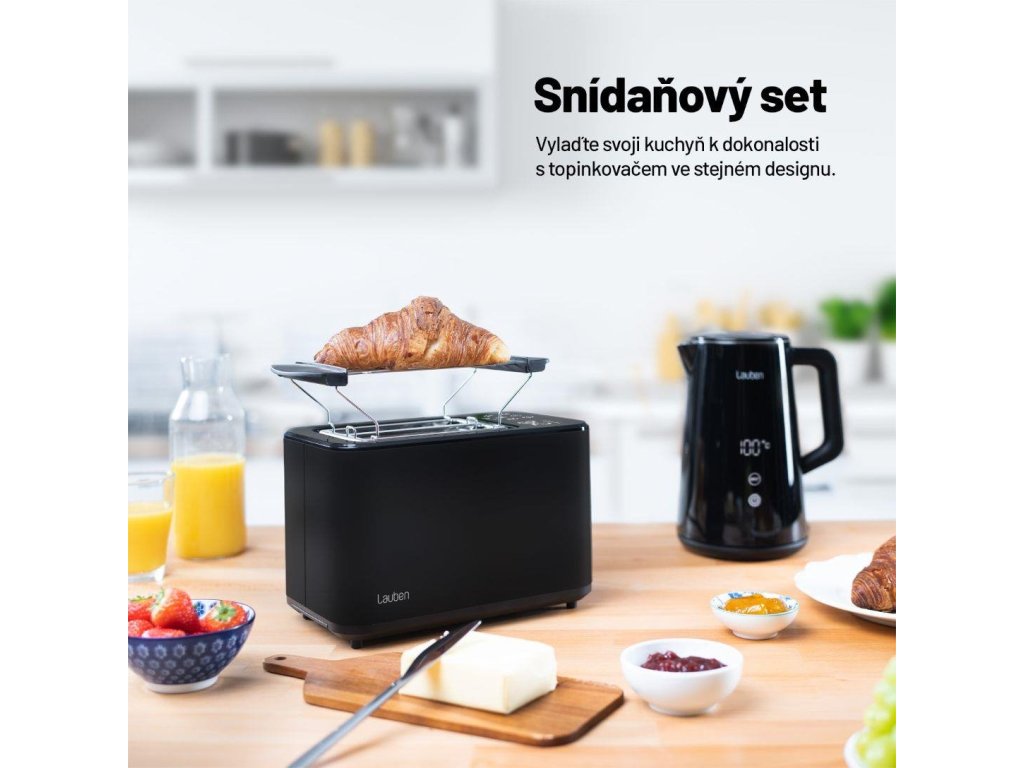 Rychlovarná konvice Lauben Electric Kettle 1800BC vyniká minimalistickým elegantním designem v černém provedení, kterému vévodí velký digitální displej ukazující teplotu. Vnitřní část je vyrobena z kvalitní nerezové oceli. Aby kabel na lince nepřekážel, jednoduše ho schováte do dna základny. Konvici můžete také doplnit digitálním topinkovačem ve stejném designu, aby vaše snídaně a svačiny byly dokonalé.