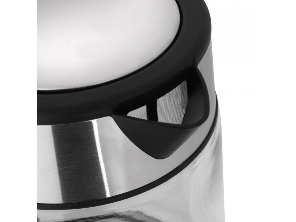 Skleněná rychlovarná konvice, objem 1,7 l, 2200 W, nastavitelná teplota 60 - 100°C po deseti stupních, funkce Keep Warm, velký LED displej, podsvícená tlačítka, pojistka proti přehřátí a vaření nasucho, vyjímatelný omyvatelný filtr, otočná základna.