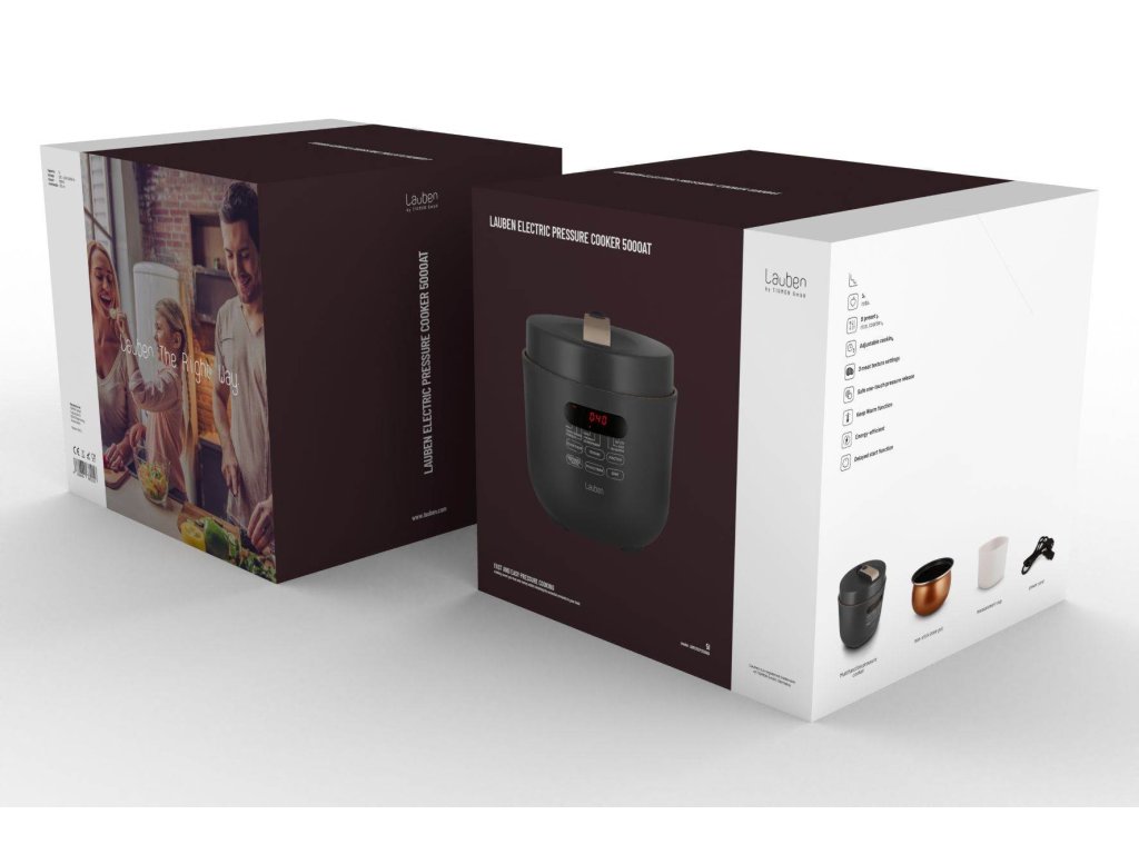 Víceúčelový a energeticky úsporný elektrický tlakový hrnec Lauben Electric Pressure Cooker 5000AT umí díky tlaku uvnitř připravit chutné pokrmy za rekordně krátkou dobu. Čas, který ušetříte, tak můžete věnovat sobě či rodině. Zároveň uspoříte i peníze, neboť spotřeba energie je při tomto způsobu vaření nižší.
