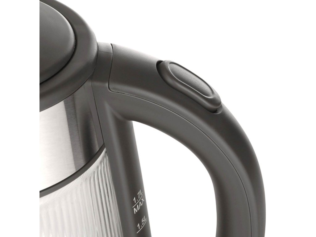 Tělo konvice je vyrobeno z vysoce odolného borosilikátového skla v trendy designu.