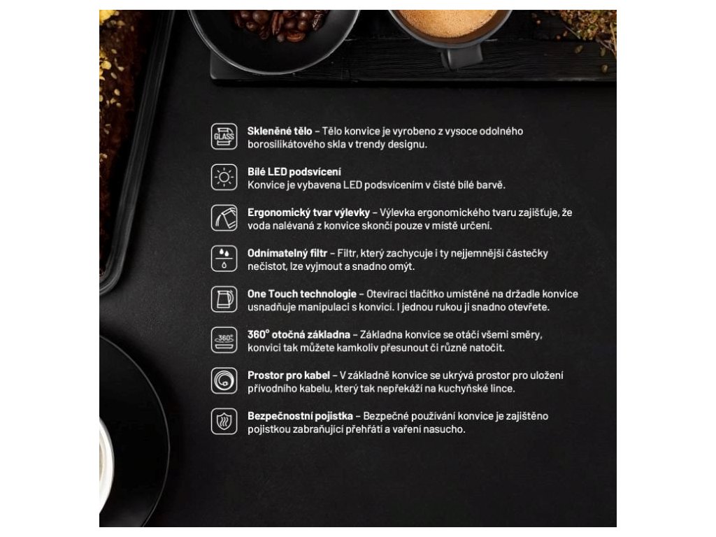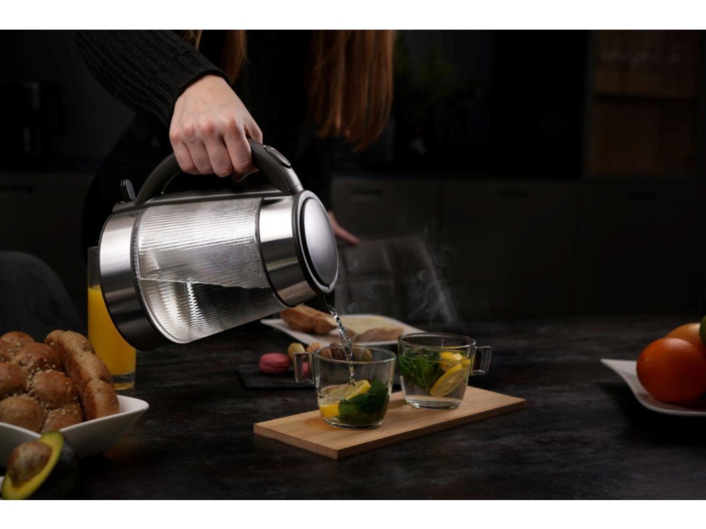 Sklo neuvolňuje do vody žádné nežádoucí látky a jeho čirost umožnila přidání bílého LED podsvícení. Vařte i vodu na čaj stylově.