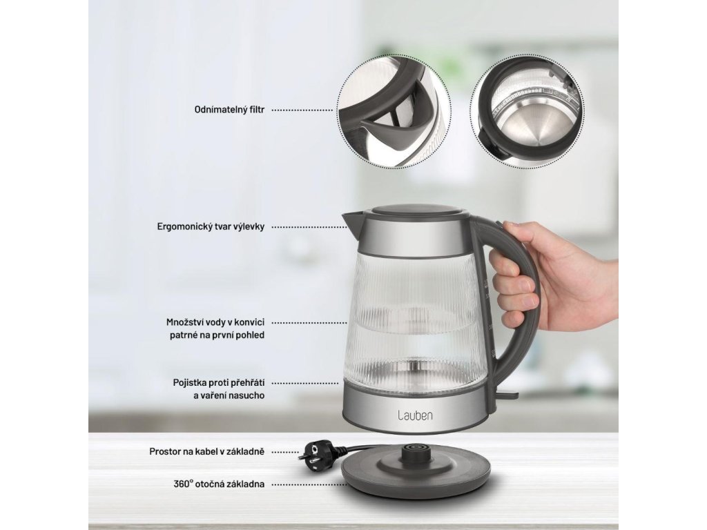 Rychlovarná konvice Lauben Glass Electric Kettle 17GG vás ušetří neustálého čištění, disponuje totiž odnímatelným filtrem, který zachytí i nejjemnější částečky nečistot z vody.