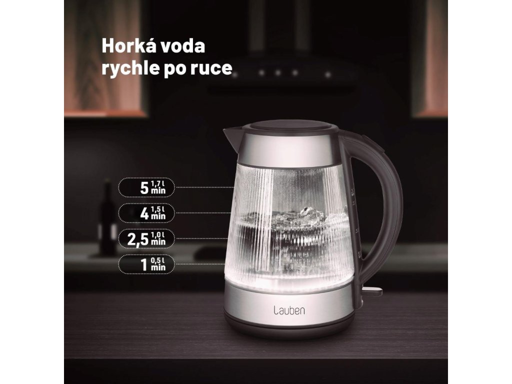 Rychlovarná konvice má v kuchyni své nezastupitelné místo a Lauben Glass Electric Kettle 17GG se díky svému trendy designu stane i její ozdobou.