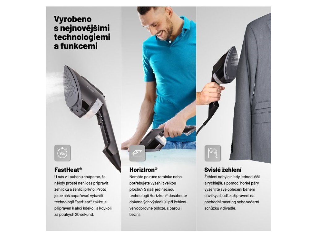 Pak nastupuje technologie HorizIron®, s níž dosáhnete dokonalých výsledků i horizontálním napařováním či žehlením nasucho.