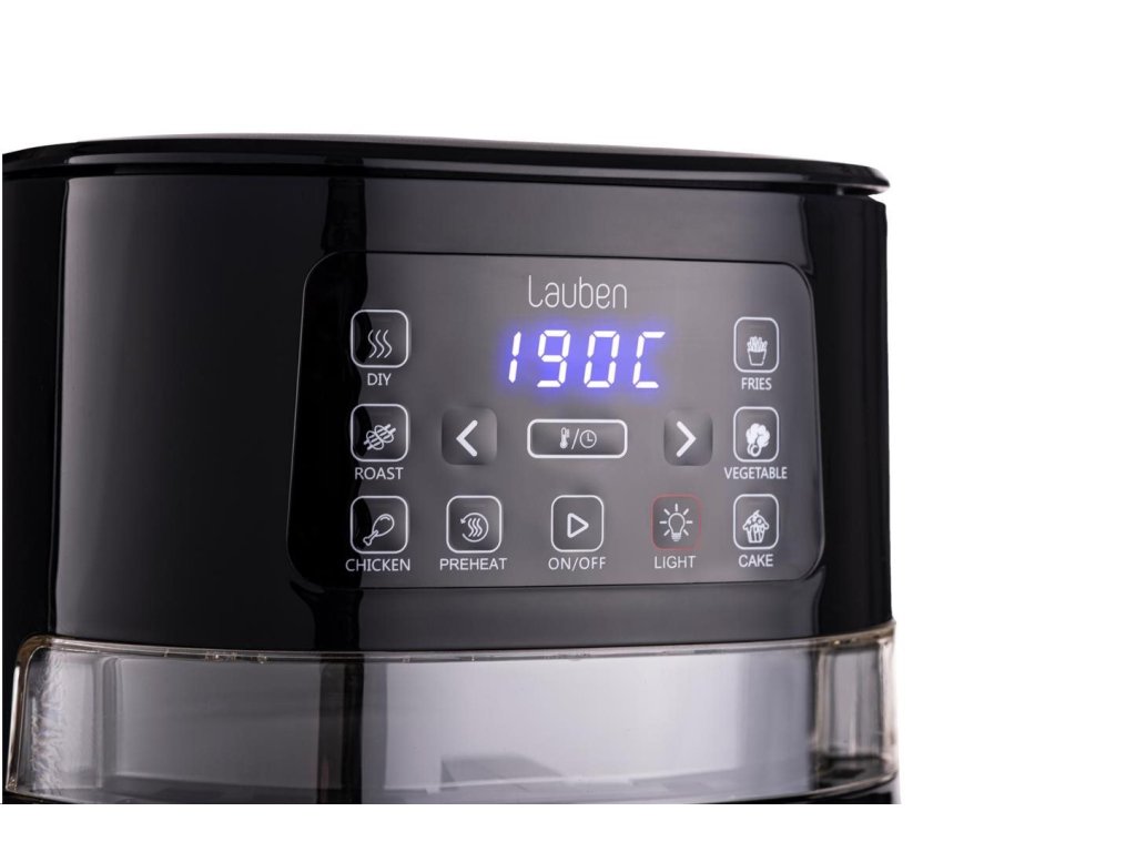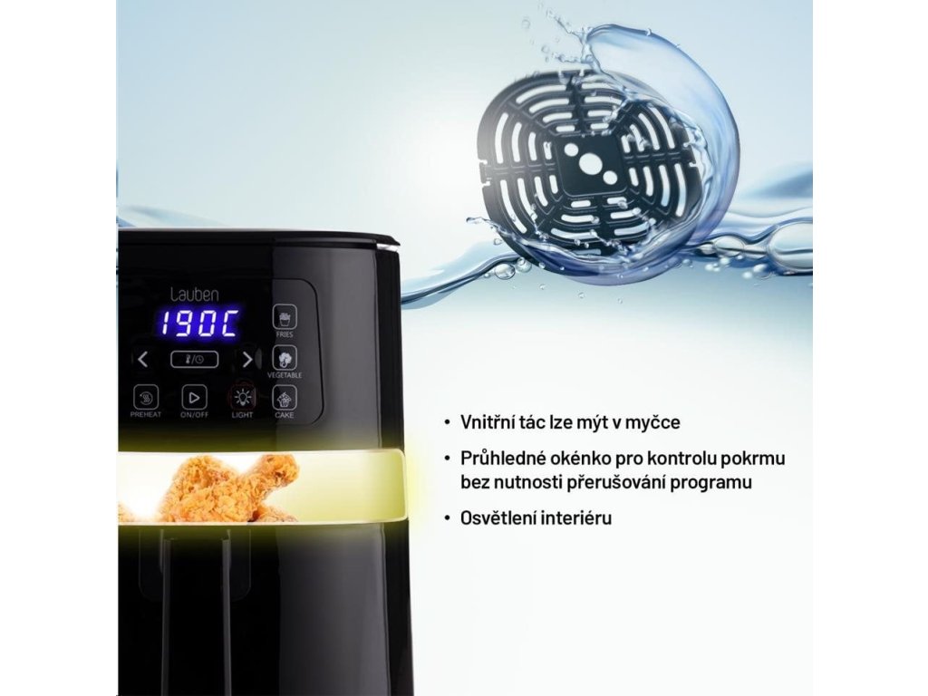 Ovládání Lauben Air Fryer je intuitivní a zvládne jej každý. Požadovaný program si nastavíte pomocí tlačítek a na displeji můžete kontrolovat teplotu a dobu přípravy. Díky průhledné části fritézy a osvětlení vnitřku můžete pokrm snadno zkontrolovat i vizuálně. Všechny komponenty, které se během přípravy jídla ušpiní, lze mýt v myčce nádobí. Třešničkou na dortu je vkusný minimalistický design, díky kterému můžete fritézu bez obav vystavit na kuchyňskou linku, i pokud si potrpíte na estetično.