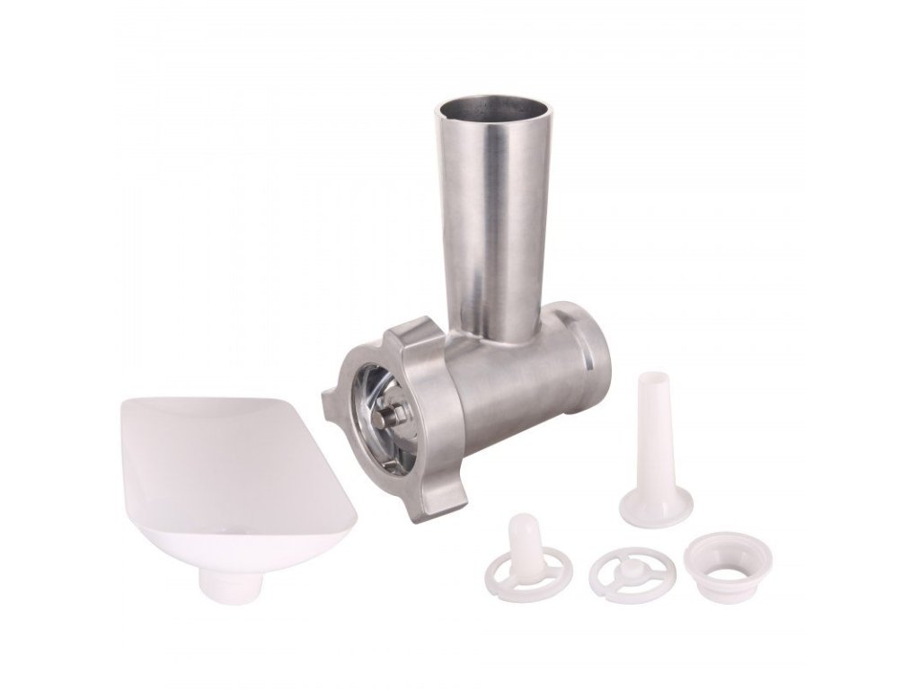 Mlýnek na maso (destičky pro jemné a hrubé mletí, čepele, tác, pěchovadlo, nástavec pro výrobu klobás a kebabu)