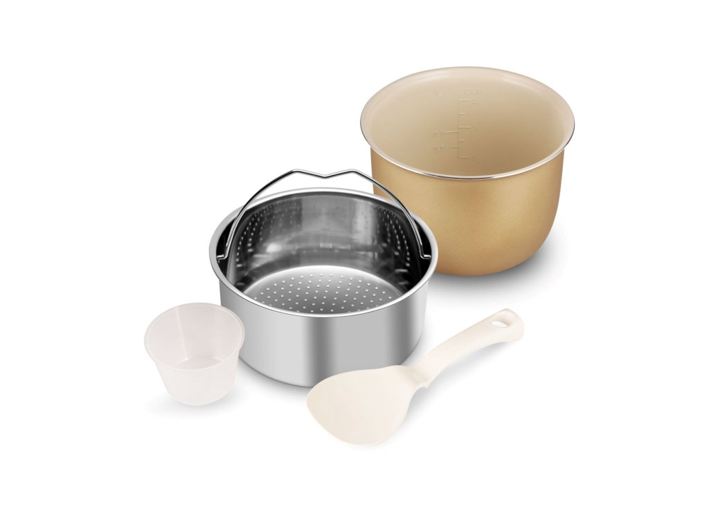 Prémiový keramický povrch vnitřního hrnce navíc neuvolňuje žádnou nežádoucí pachuť ani aroma, příprava pokrmů je tak zdravější. Pokud chcete svůj životní styl ještě vylepšit, využijte nerezového pařáčku pro dušení v páře.