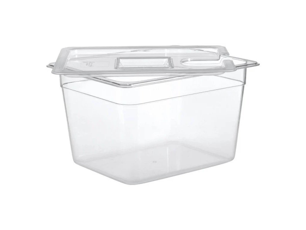 Nádoba na sous vide, objem 12 l, vhodné do myčky, vhodné pro většinu sous vide vařičů na trhu, certifikace pro kontakt s potravinami, lépe udržuje teplotu a omezuje vypařování vody, provozní teplota -40 – 100°C, 320x263x200 mm