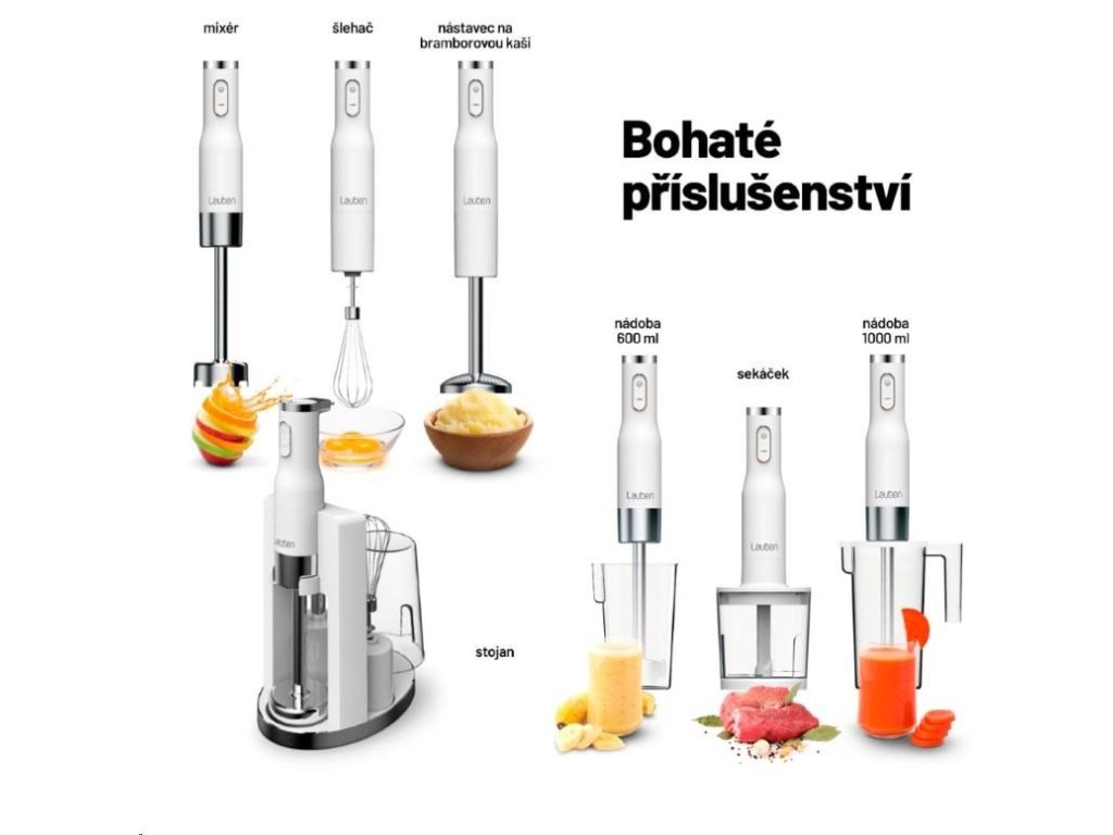 Lauben Stick Blender 800 jsme vybavili bohatým příslušenstvím již v základním balení: