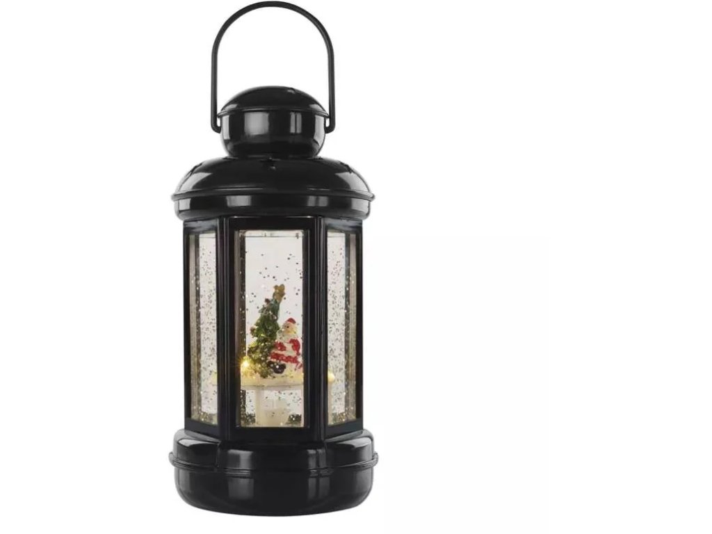 LED dekorace – vánoční lucerna se Santou, 20 cm, 3x AAA, vnitřní, teplá bílá, časovač