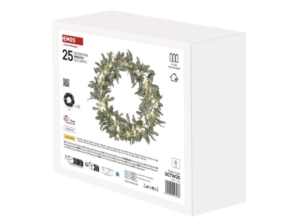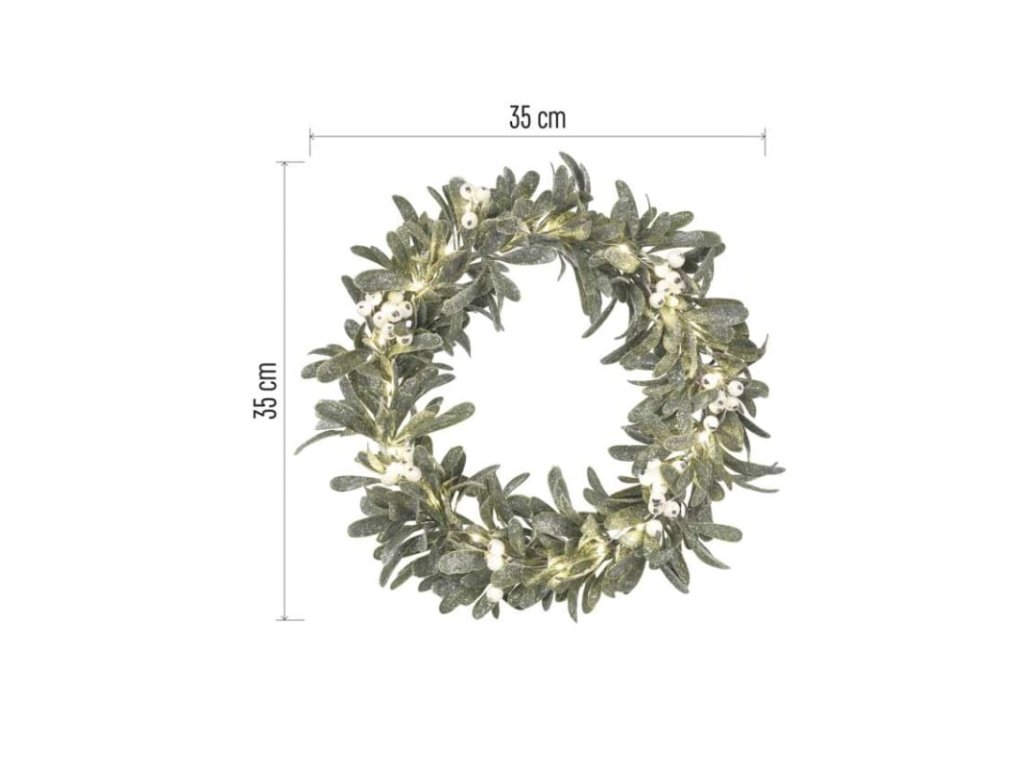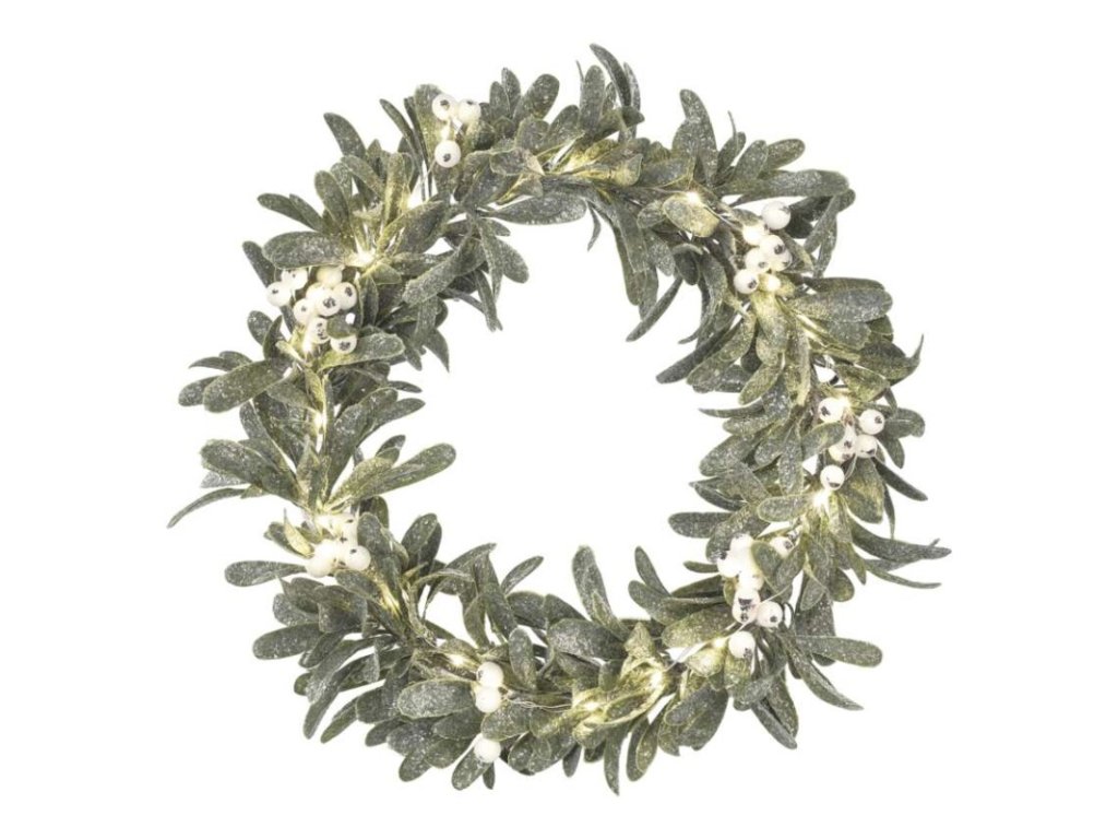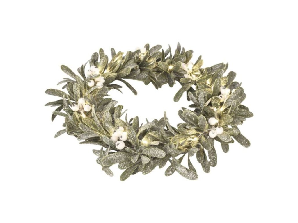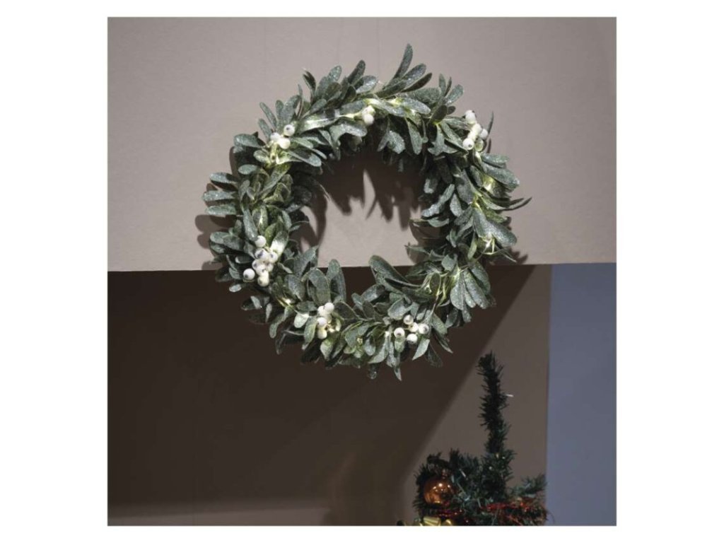 LED dekorace - věnec jmelí, 3x AA, teplá bílá, časovač
