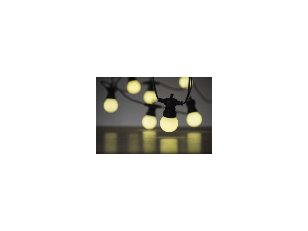 LED světelný řetěz – 10x párty žárovky mléčné, 5 m, venkovní i vnitřní, teplá bílá