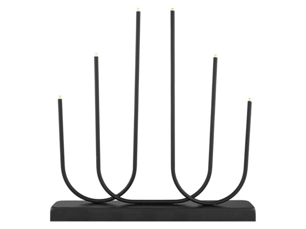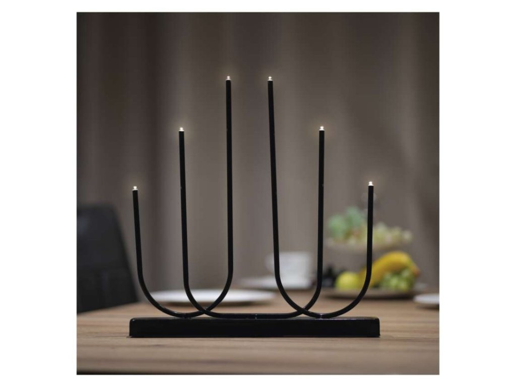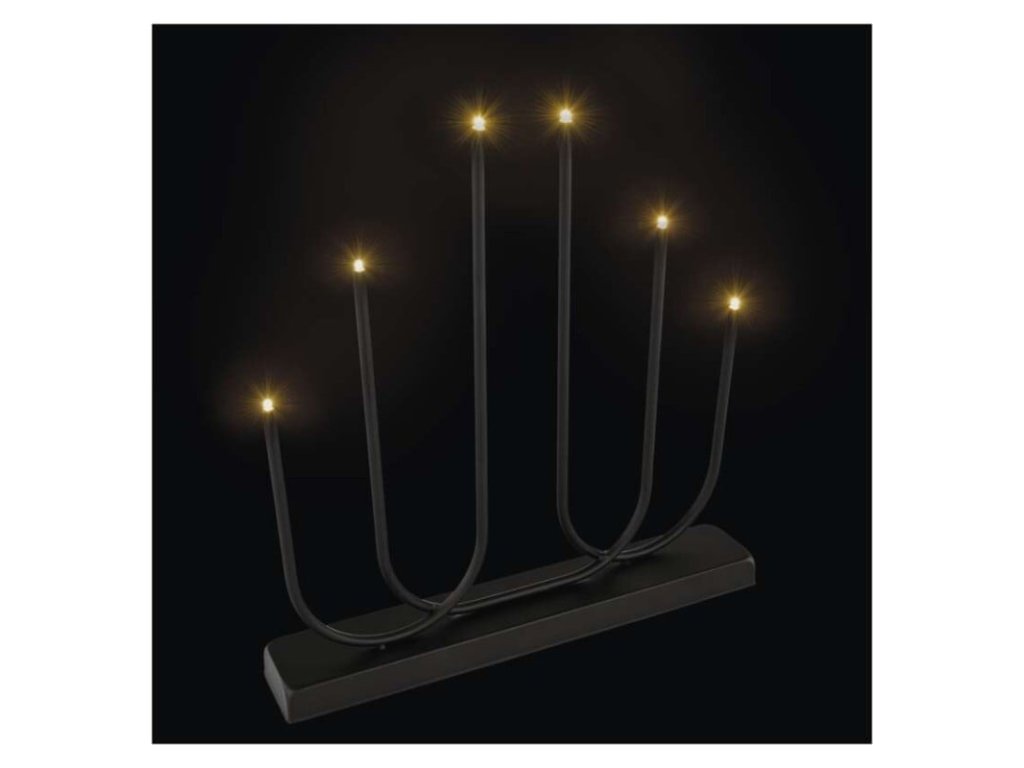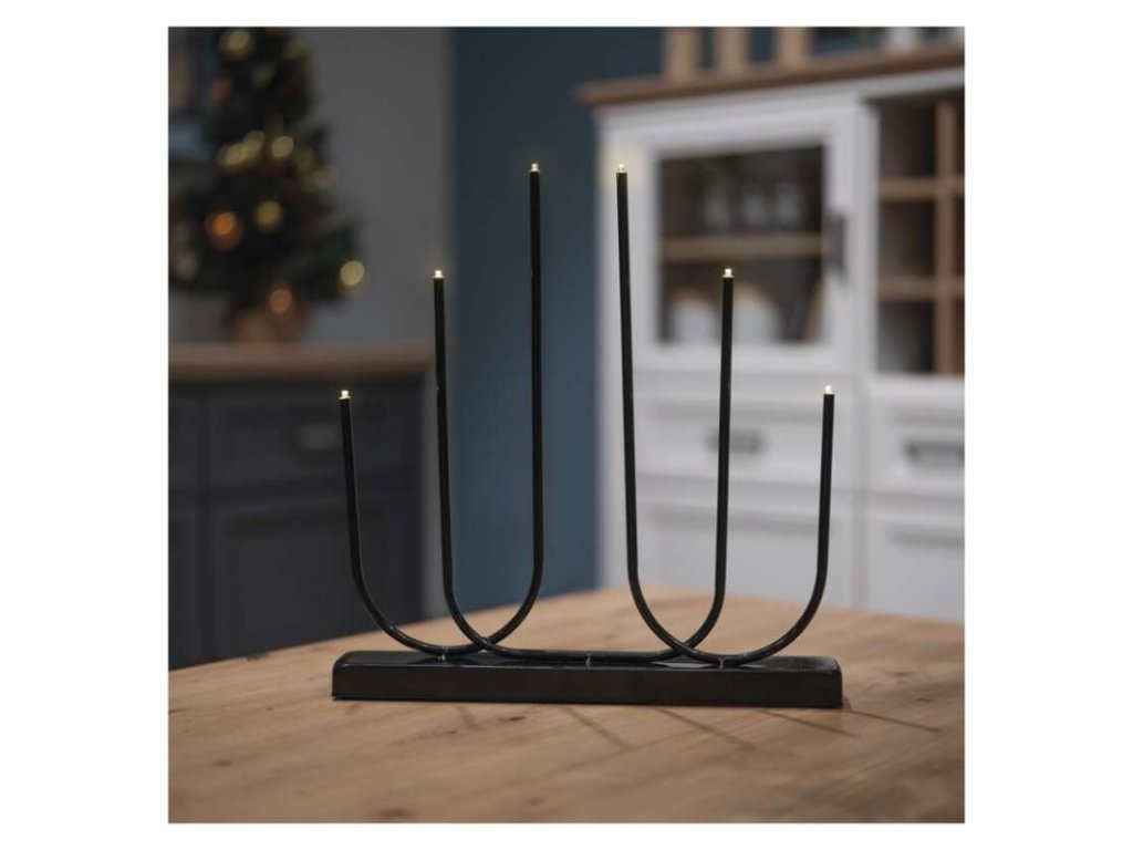 LED svícen kovový černý, 40 cm, 2x AA, vnitřní, teplá bílá