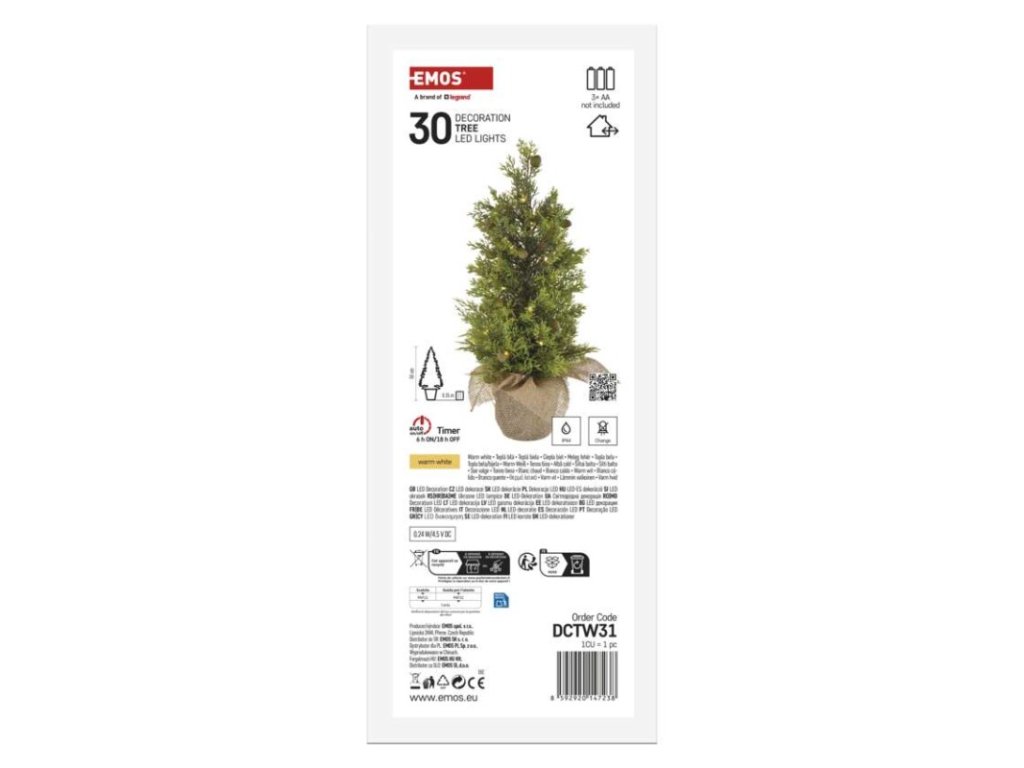 LED svítící stromek, 50 cm, venkovní i vnitřní, teplá bílá, časovač