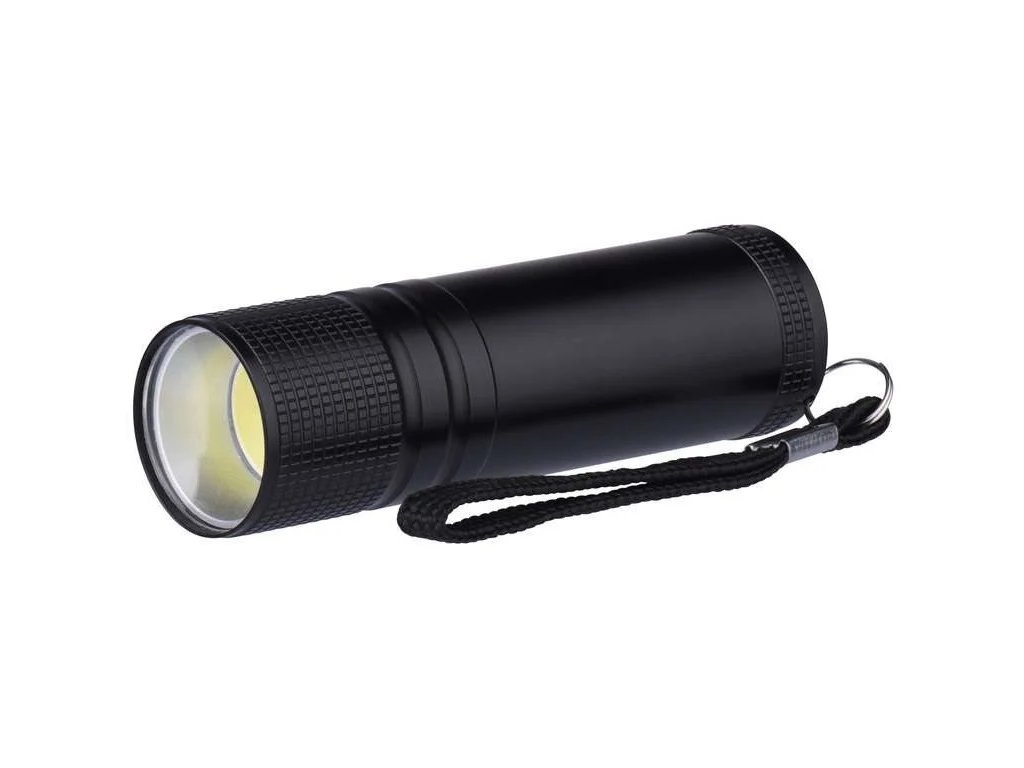LED svítilna kovová, 3W COB LED, na 3x AAA černá