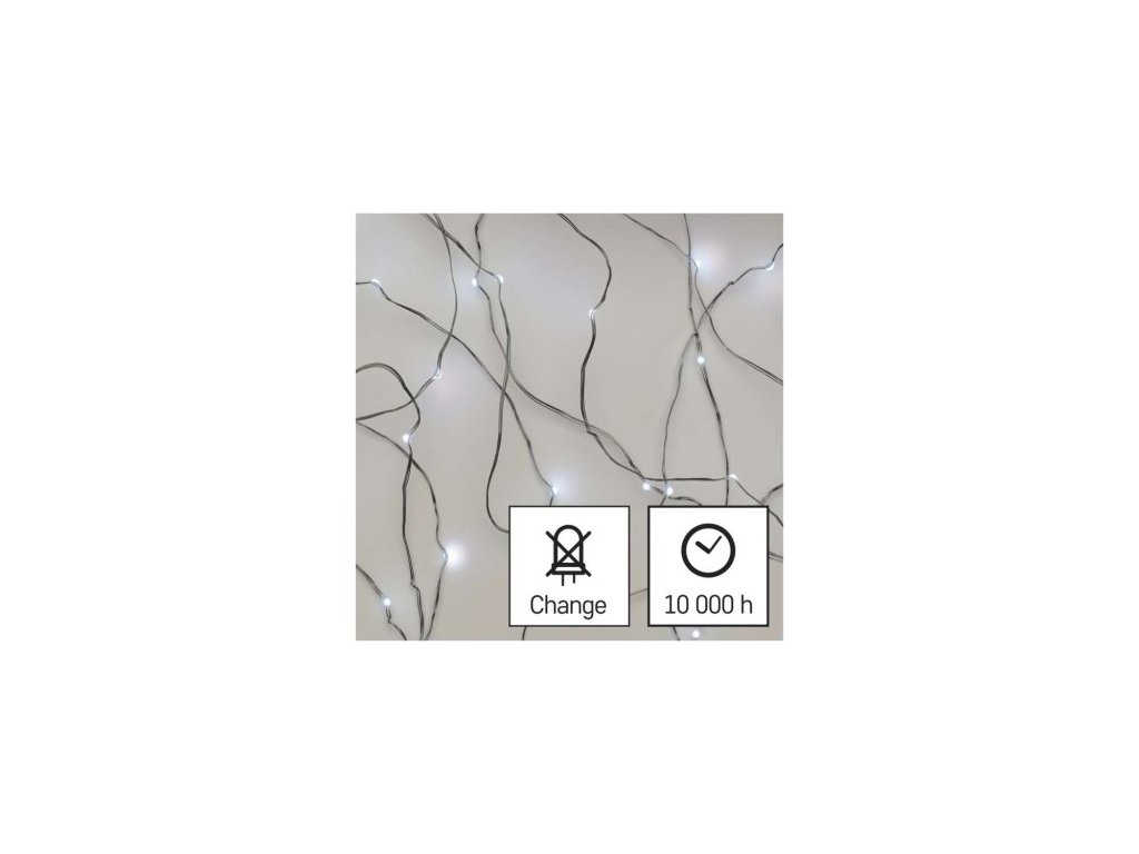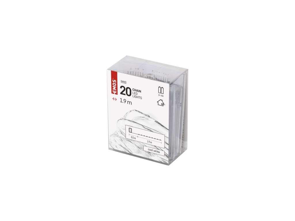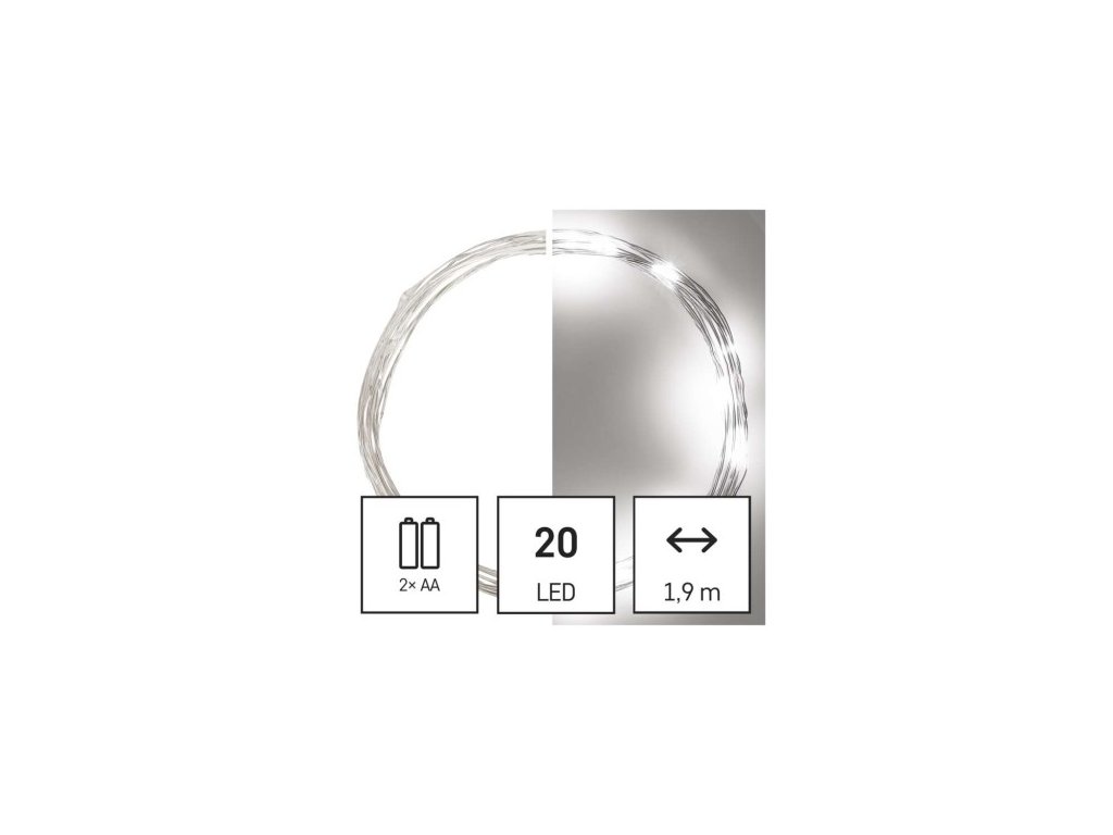 LED vánoční nano řetěz, 1,9 m, 2x AA, vnitřní, studená bílá, časovač