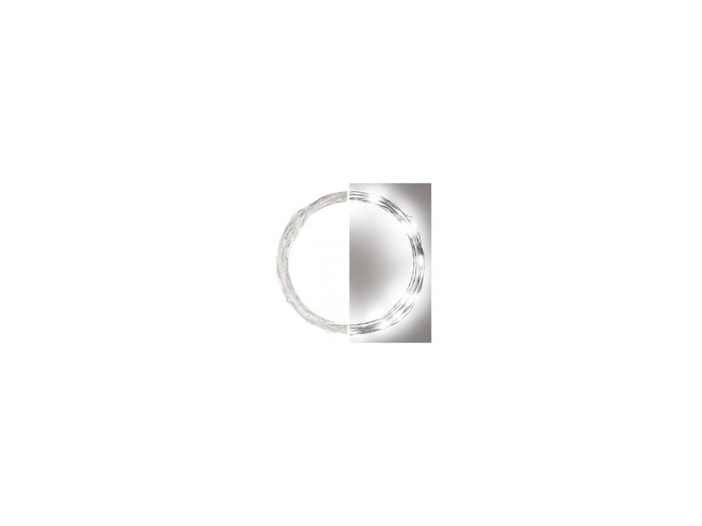 LED vánoční nano řetěz stříbrný, 4 m, venkovní i vnitřní, studená bílá, časovač