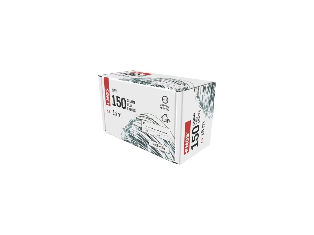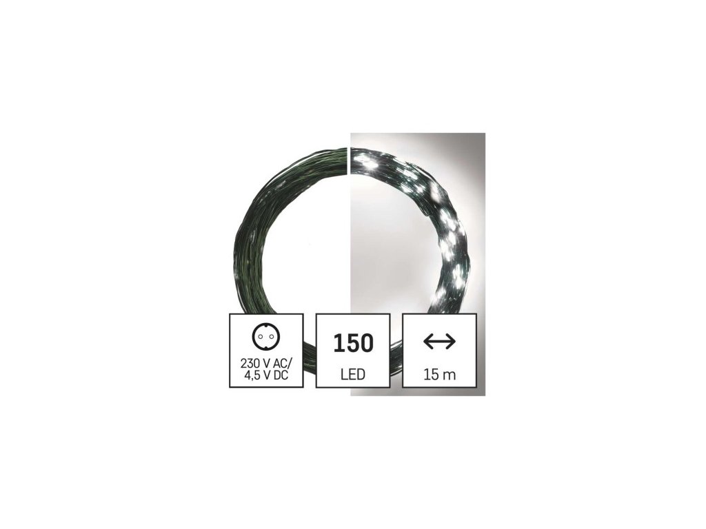 LED vánoční nano řetěz zelený, 15 m, venkovní i vnitřní, studená bílá, časovač
