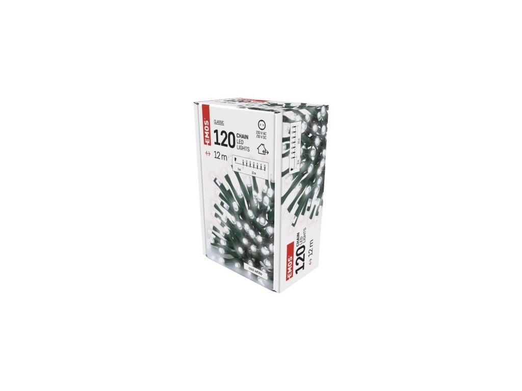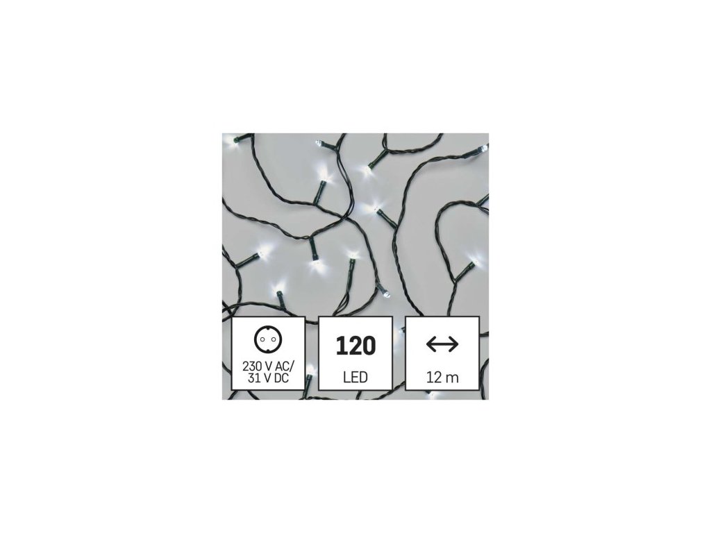LED vánoční řetěz, 12 m, venkovní i vnitřní, studená bílá, časovač