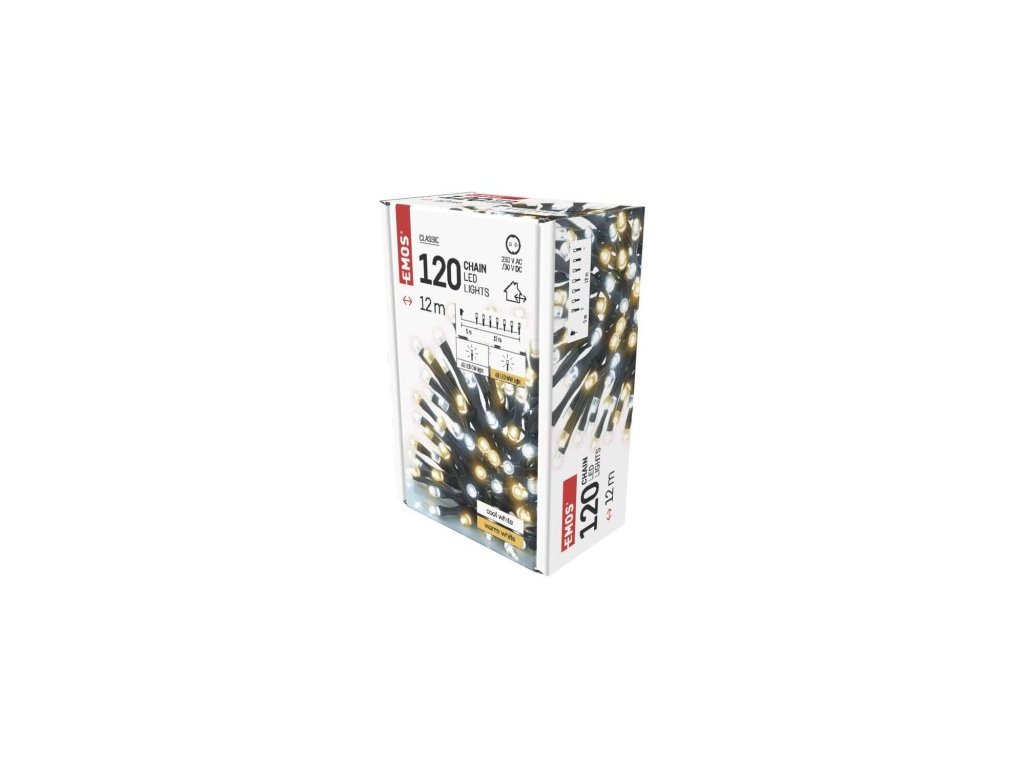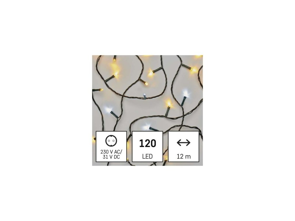 LED vánoční řetěz, 12 m, venkovní i vnitřní, teplá/studená bílá, časovač