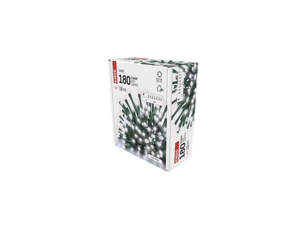 LED vánoční řetěz, 18 m, venkovní i vnitřní, studená bílá, časovač