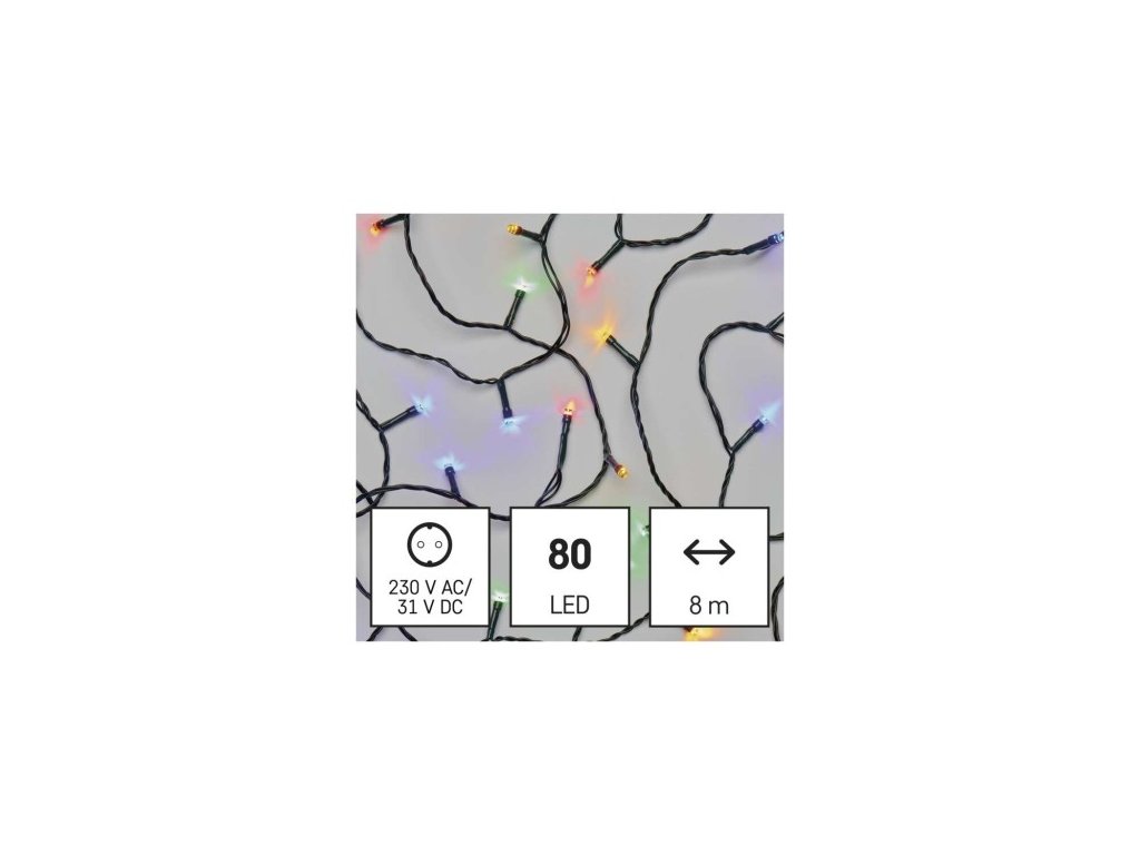 LED vánoční řetěz, 8 m, venkovní i vnitřní, multicolor, časovač