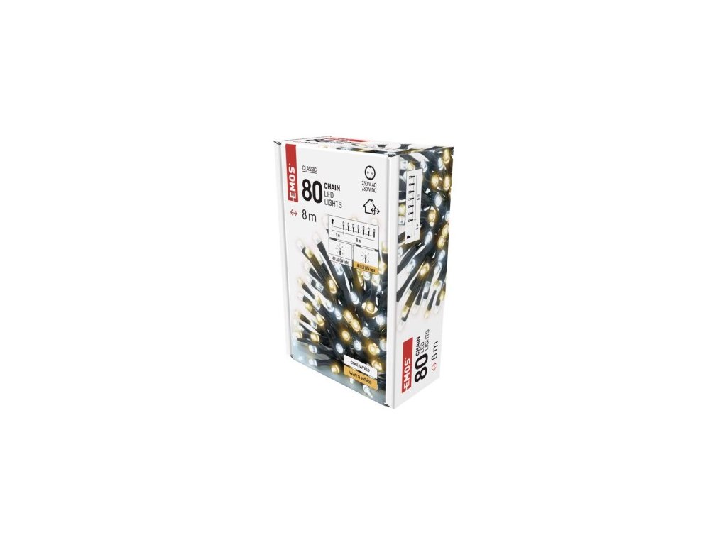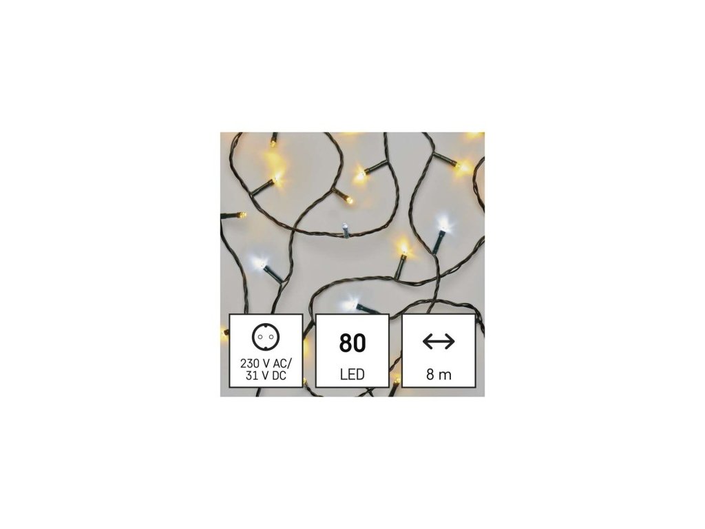 LED vánoční řetěz, 8 m, venkovní i vnitřní, teplá/studená bílá, časovač