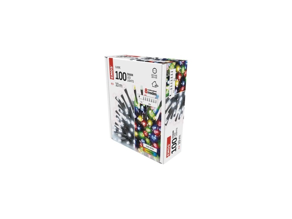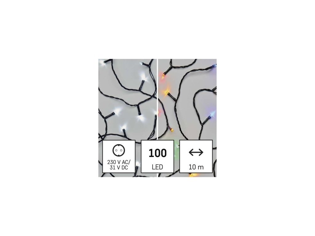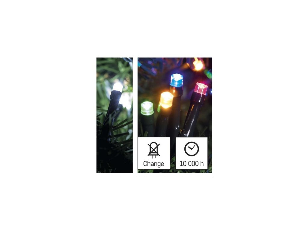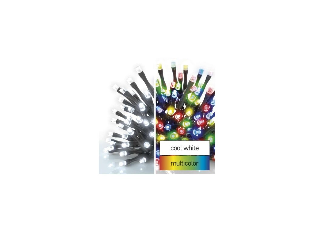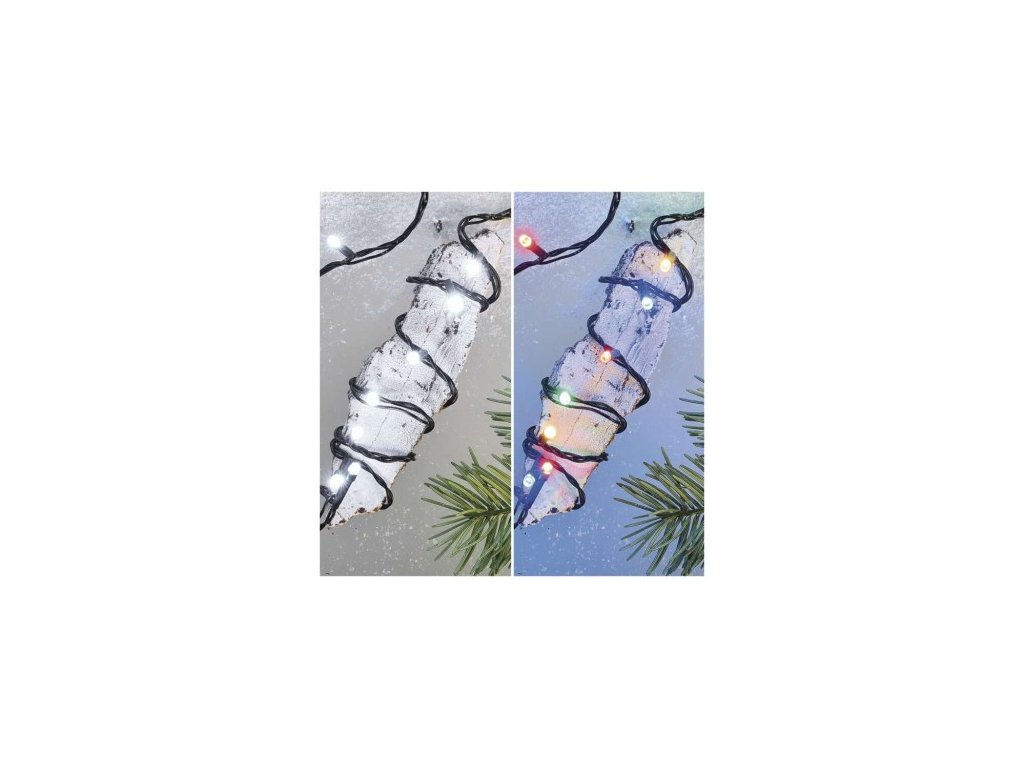 LED vánoční řetěz 2v1, 10 m, venkovní i vnitřní, studená bílá/multicolor, programy