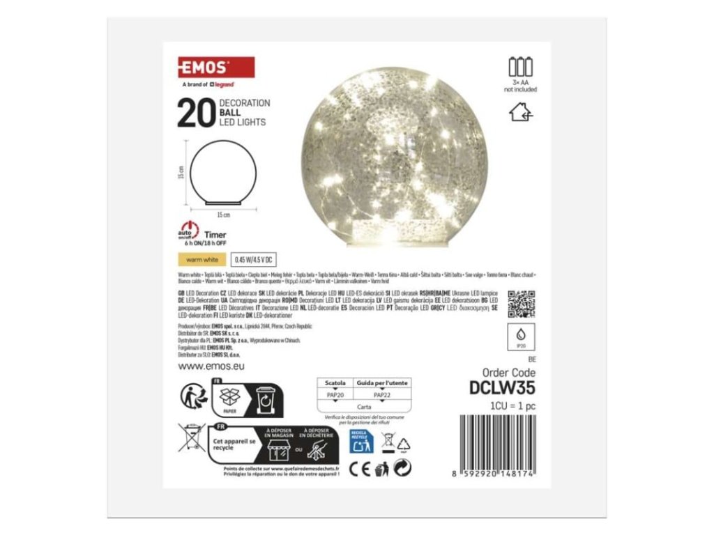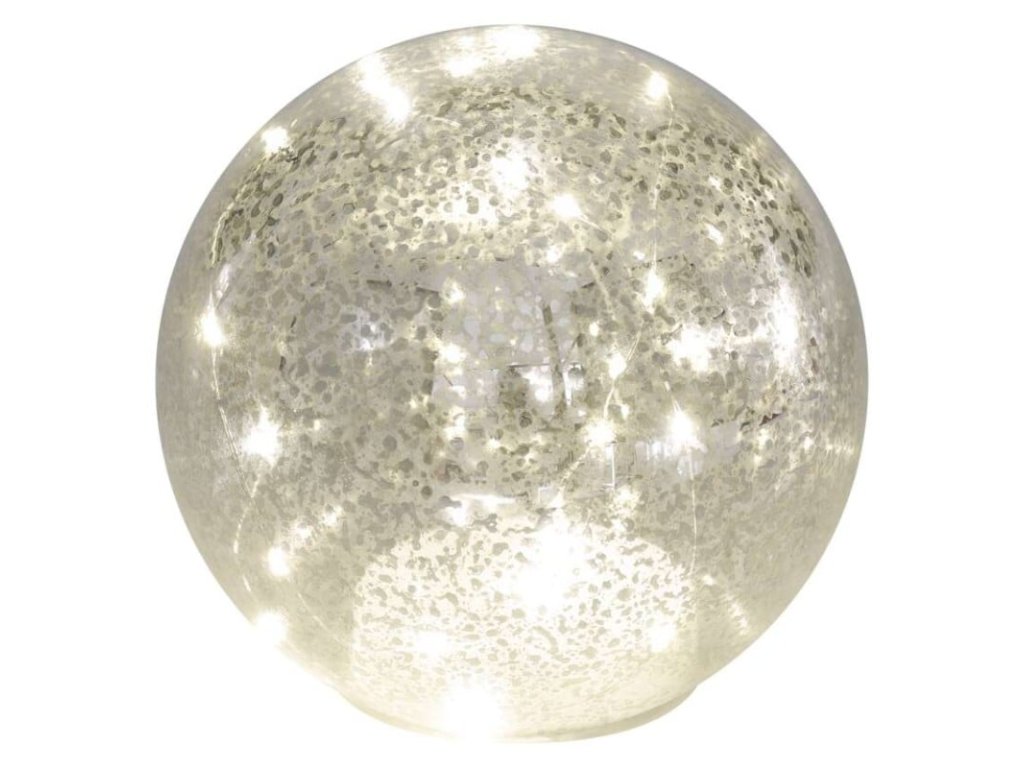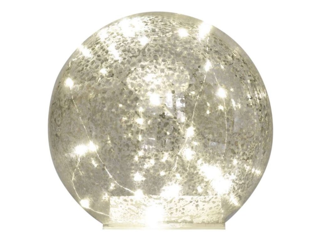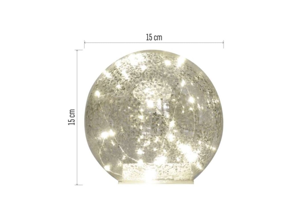 LED vánoční skleněná koule – zlatá, 15 cm, 3x AA, vnitřní, teplá bílá, časovač