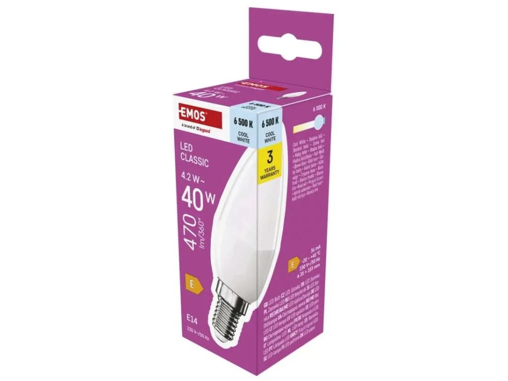 LED žárovka Classic svíčka / E14 / 4,2 W (40 W) / 470 lm / studená bílá