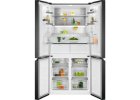 Volně stojící americká lednička, 4 dveře, objem 351/170 litrů, energetická třída E, barva nerezová, invertorový motor, Free Built-IN pro umístění pouhý 1 cm od zdi, 2 police chladničky, 6 mrazicích přihrádek, 1 chladicí okruh, šířka 83,3 cm, výška 190 cm.