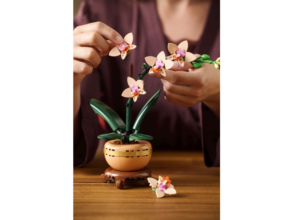 Pěstujte kreativitu se stavebnicí LEGO® (10343) Miniaturní orchidej pro dospělé. Tato orchidej je nádherný dekorativní dárek pro ženy, muže a milovníky květin a poslouží jako krásná květinová výstavka, kterou nemusíte zalévat. Tato věrná replika obsahuje 5 kvetoucích květů orchideje, několik poupat a listy. Součástí je také světlý terakotový květináč na krásném podstavci s efektem dřeva. Začínající květináři si tuto krásnou květinu z kostek LEGO můžou vystavit doma nebo v kanceláři a dodat místu kousek klidné přírody. Orchidej je součástí klasické čtveřice krásných rostlin známých v tradičním čínském umění jako „Čtyři gentlemani“. Představuje období jara a symbolizuje nové začátky. Tato stavebnice LEGO pro dospělé se proto skvěle hodí jako dárek ke kolaudaci, k narozeninám nebo k výjimečným příležitostem.