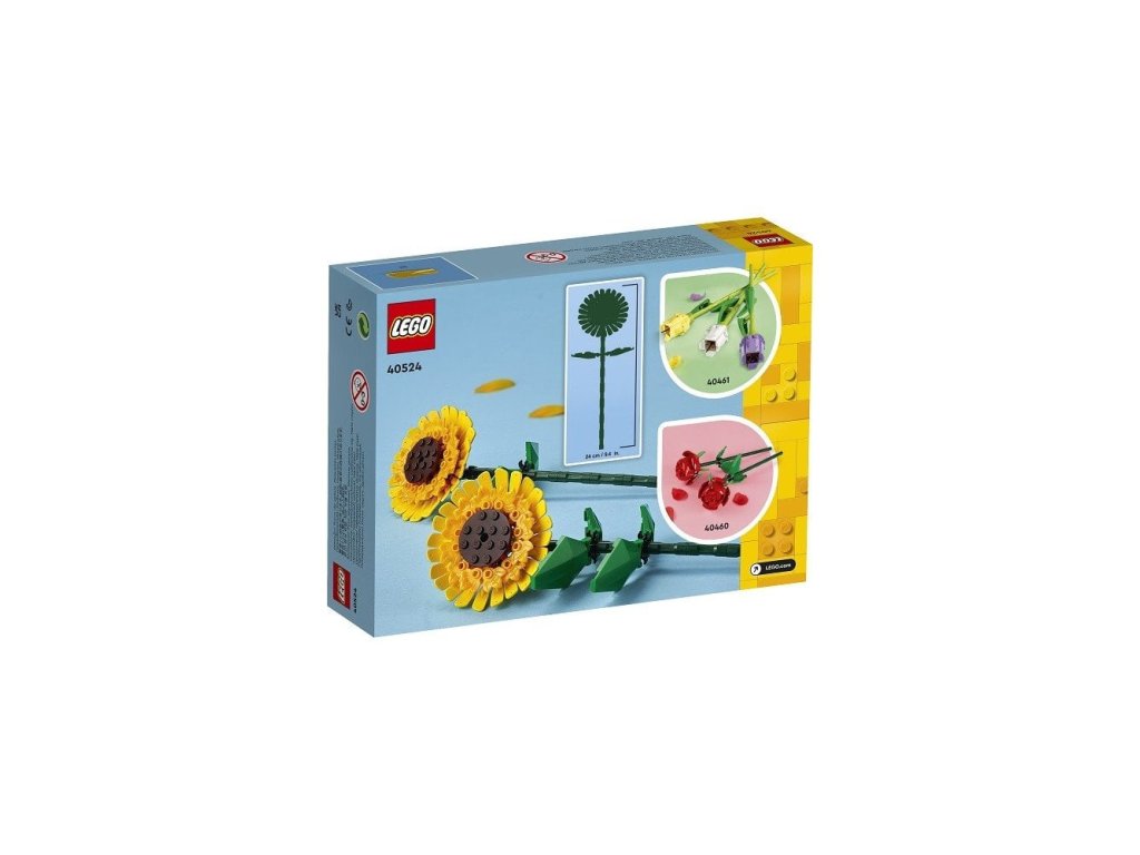 Zkombinujte s dalšími stavebnicemi – LEGO® slunečnice můžete vystavit samotné nebo zkombinovat s růžemi (40460), tulipány (40461) nebo kyticí (10280). Jednotlivé stavebnice se prodávají samostatně