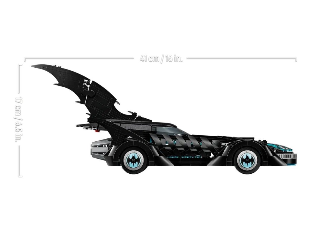 Tato autentická replika kultovního vozu z filmu Batman navždy obsahuje tvarované čelní sklo, pohyblivá kola, dekorace a otevírací kokpit, který odhaluje propracovaný interiér. Součástí vozidla je také minifigurka Batmana s vlastním speciálním podstavcem.