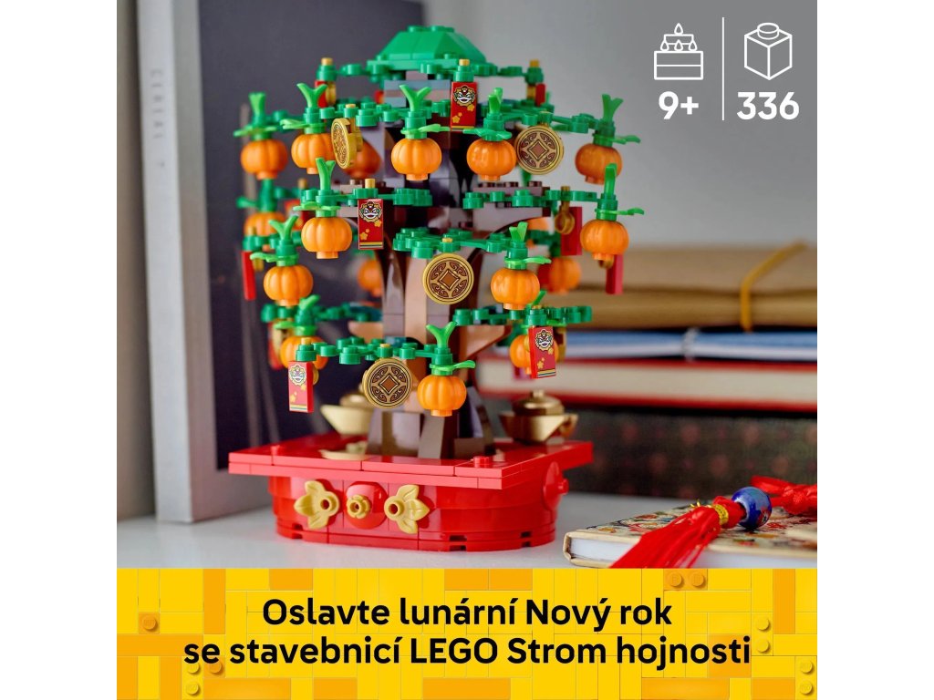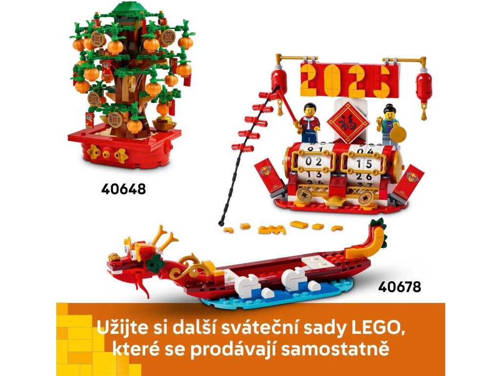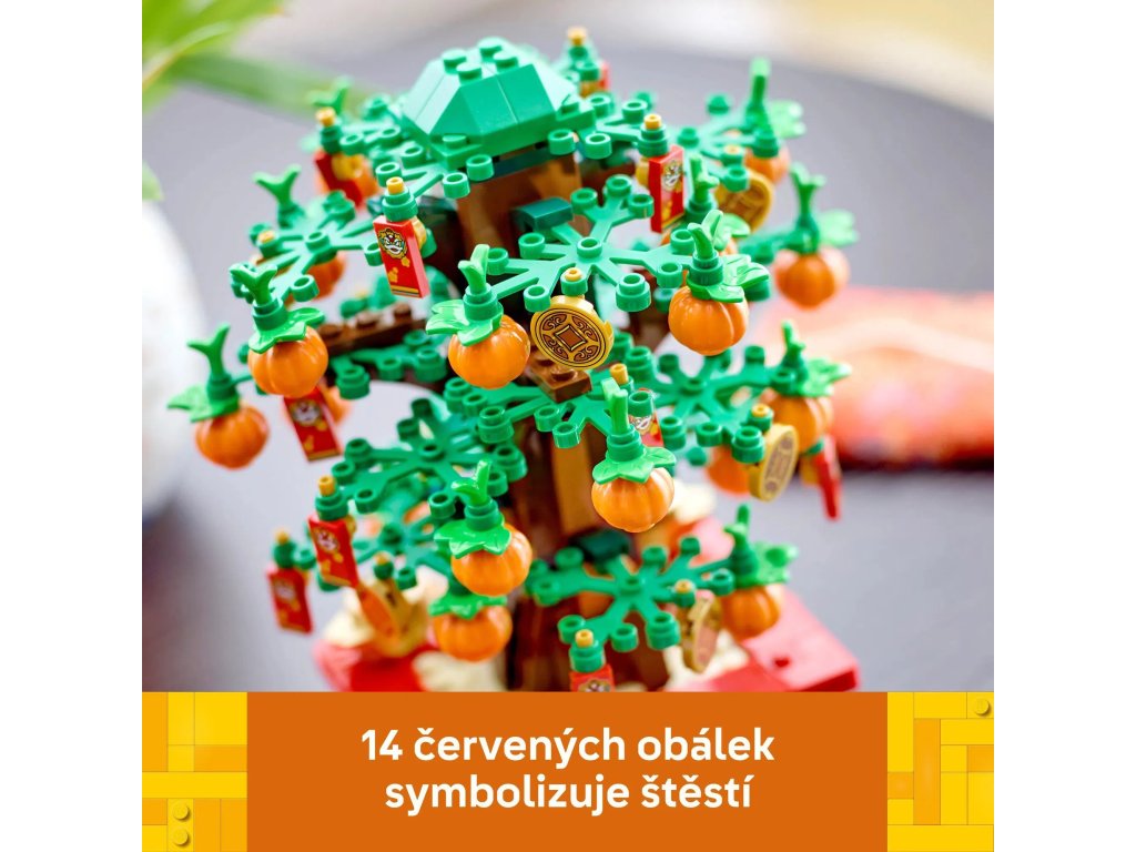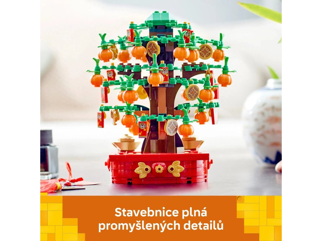 Podpořte kreativitu se stavebnicí LEGO® (40648) Strom hojnosti pro děti, se kterou kluci a holky od 9 let oslaví lunární Nový rok a postaví si krásnou dekoraci z kostek LEGO. Stavitelé se při stavění Stromu hojnosti ponoří do tradice a objeví jehoúžasné detaily. V čínské kultuře se již po dlouhou dobu věří, že strom hojnosti přináší prosperitu a štěstí. Proto je tento strom LEGO zdoben bohatstvím a odměnami, včetně 20 mandarinek, 14 červených obálek a 10 mincí. Po sestavení se model stane pouta vým výstavním kouskem oslavujícím lunární Nový rok, který lze vystavit v kterékoli místnosti nebo na stole. Tato milá stavebnice představuje skvělý nápad na dárek pro děti a potěší každého, kdo tento svátek slaví nebo se o něm chce dozvědět více.
